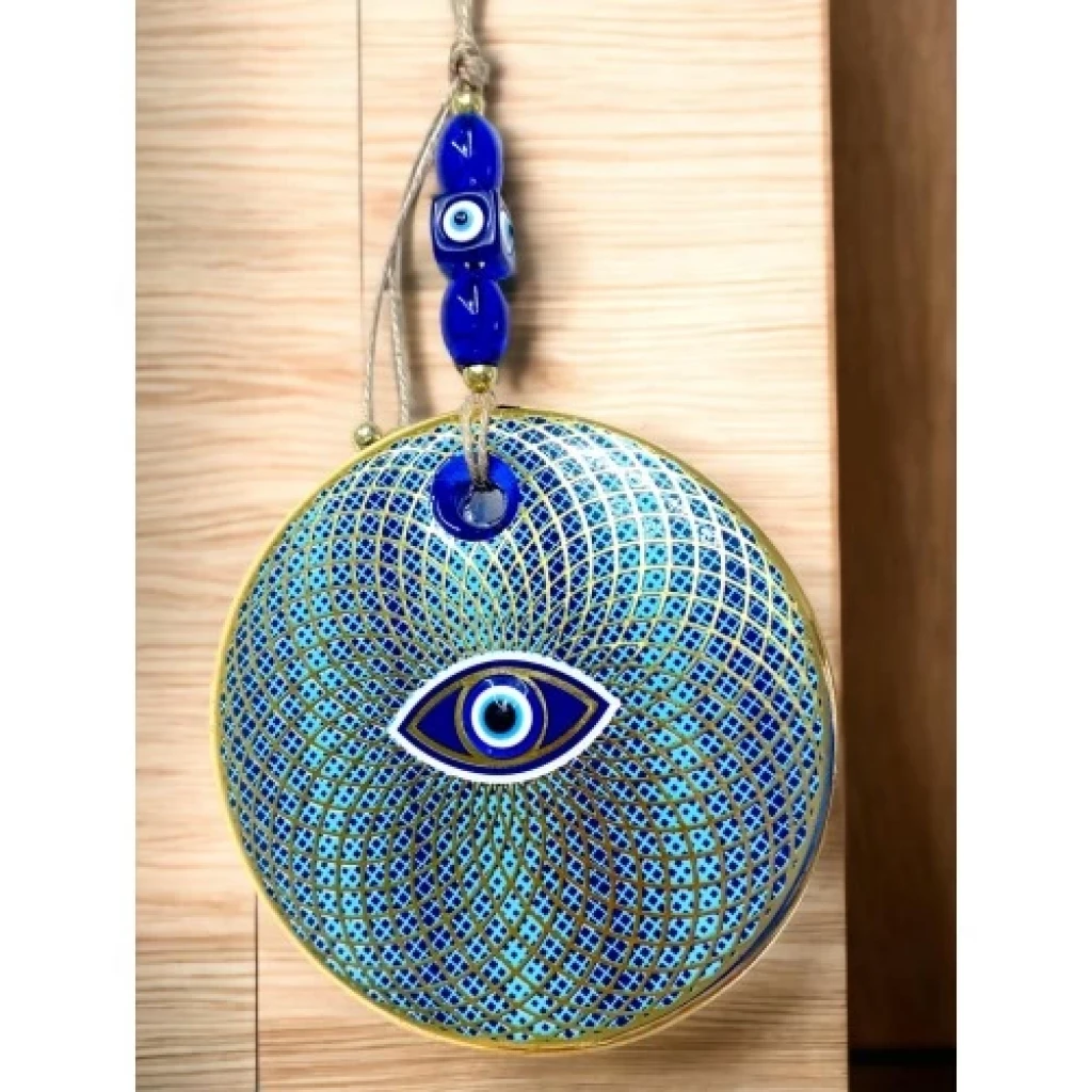İşlemeli Geometrik Nazar Boncuklu Cam Duvar Süsü