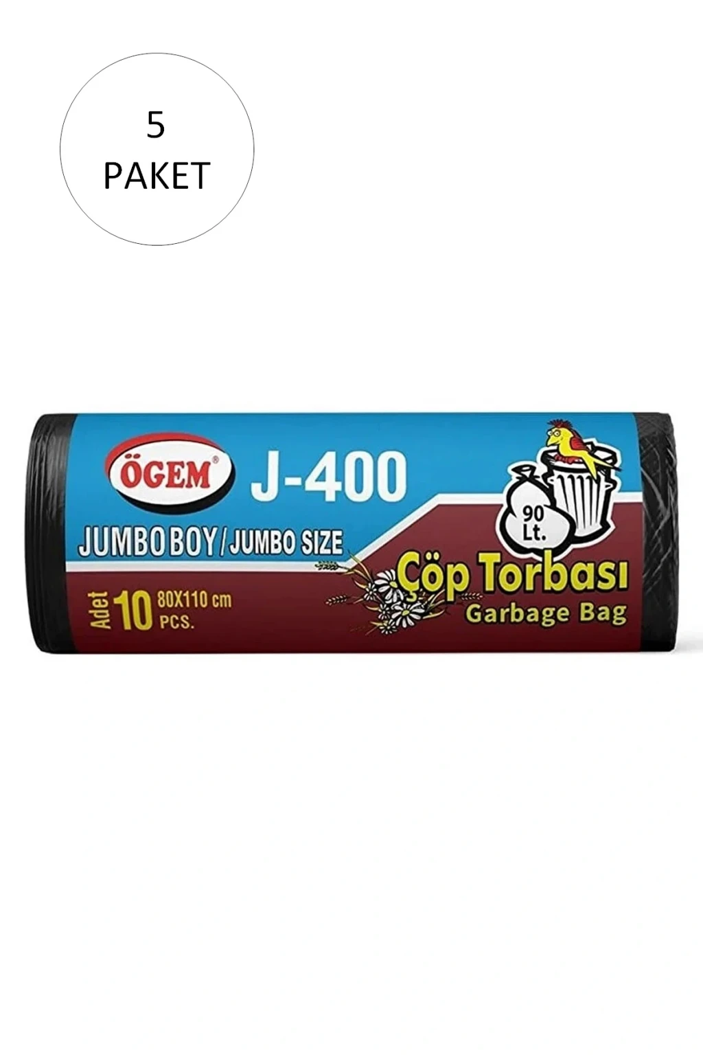 J-400 Jumbo Boy Çöp Torbası 80 x 110 cm 10 Lu Rulo x 5 Paket = 50 Adet (Siyah)