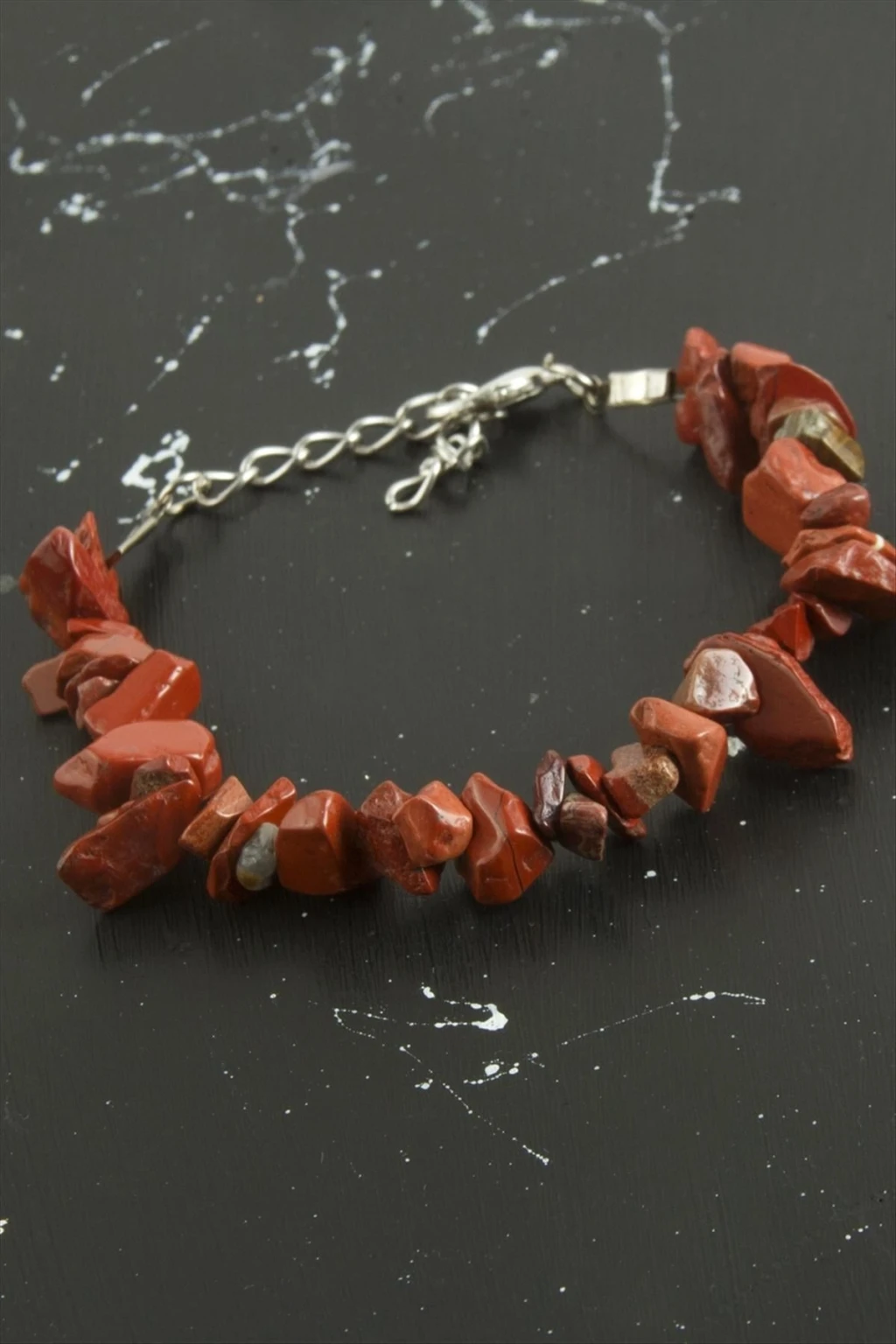 Bileklik; Ürün malzemesi jasper doğal taşından imal edilmiştir. Ürün uzunluğu 19 cmdir.