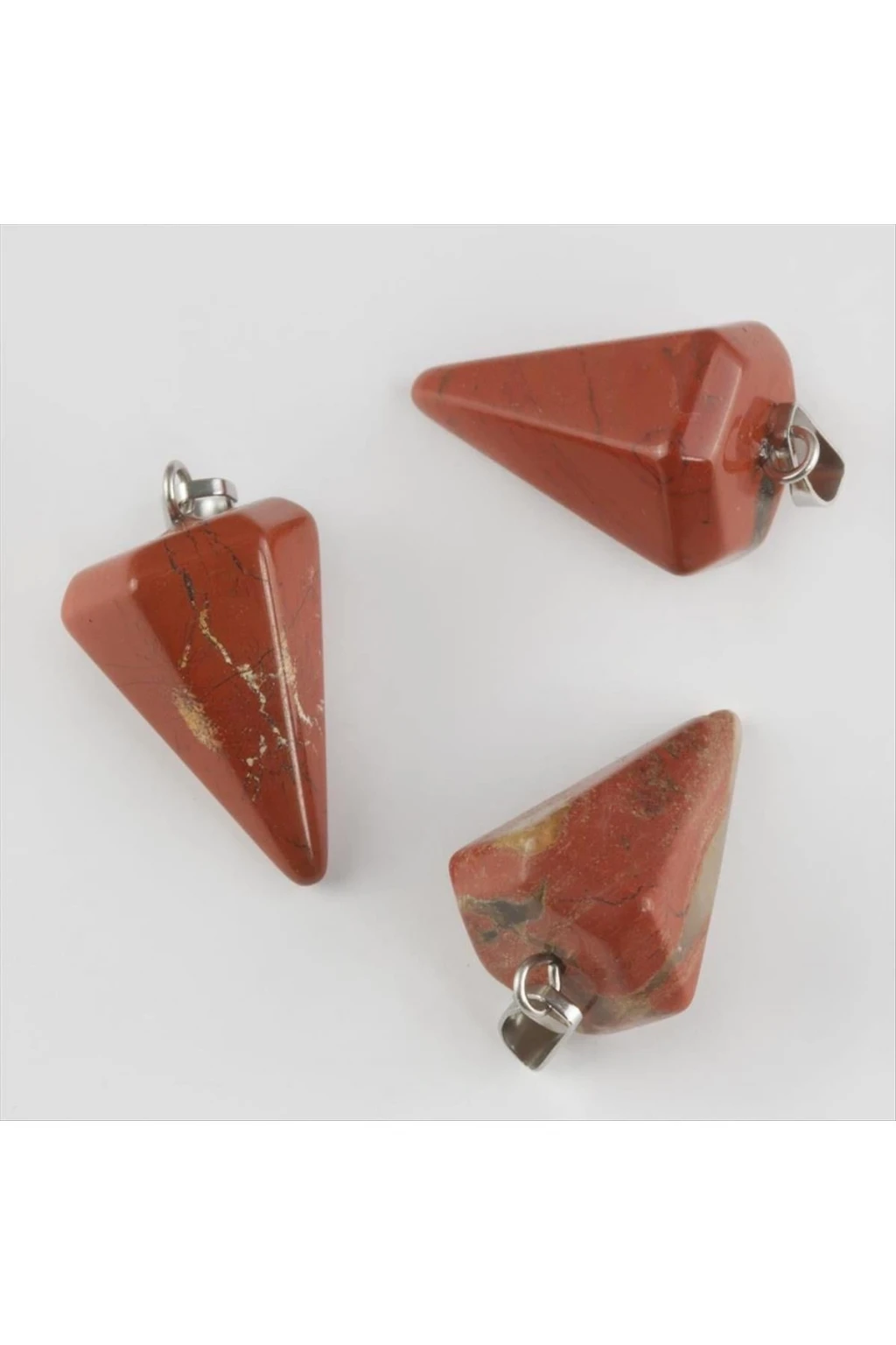 Ürün kolye ucu olarak kullanılmaktadır. Doğaltaş jasperdır. Şekil olarak üçgen biçimindedir. Üzerinde ip veya zincir geçirmek için metal kısımı bulunmaktadır. Uzunluğu yaklaşık olarak 2 cmdir. Ürün zincirsiz olarak gönderilecektir.