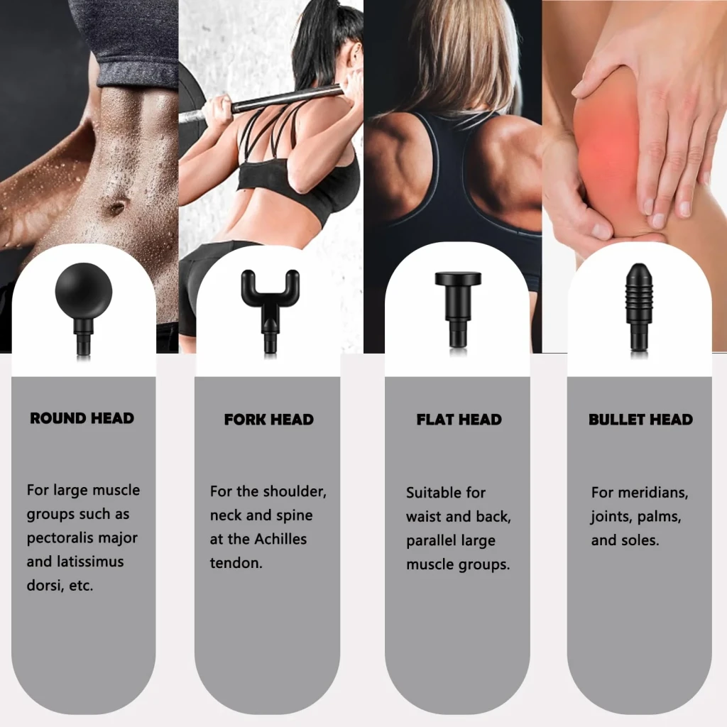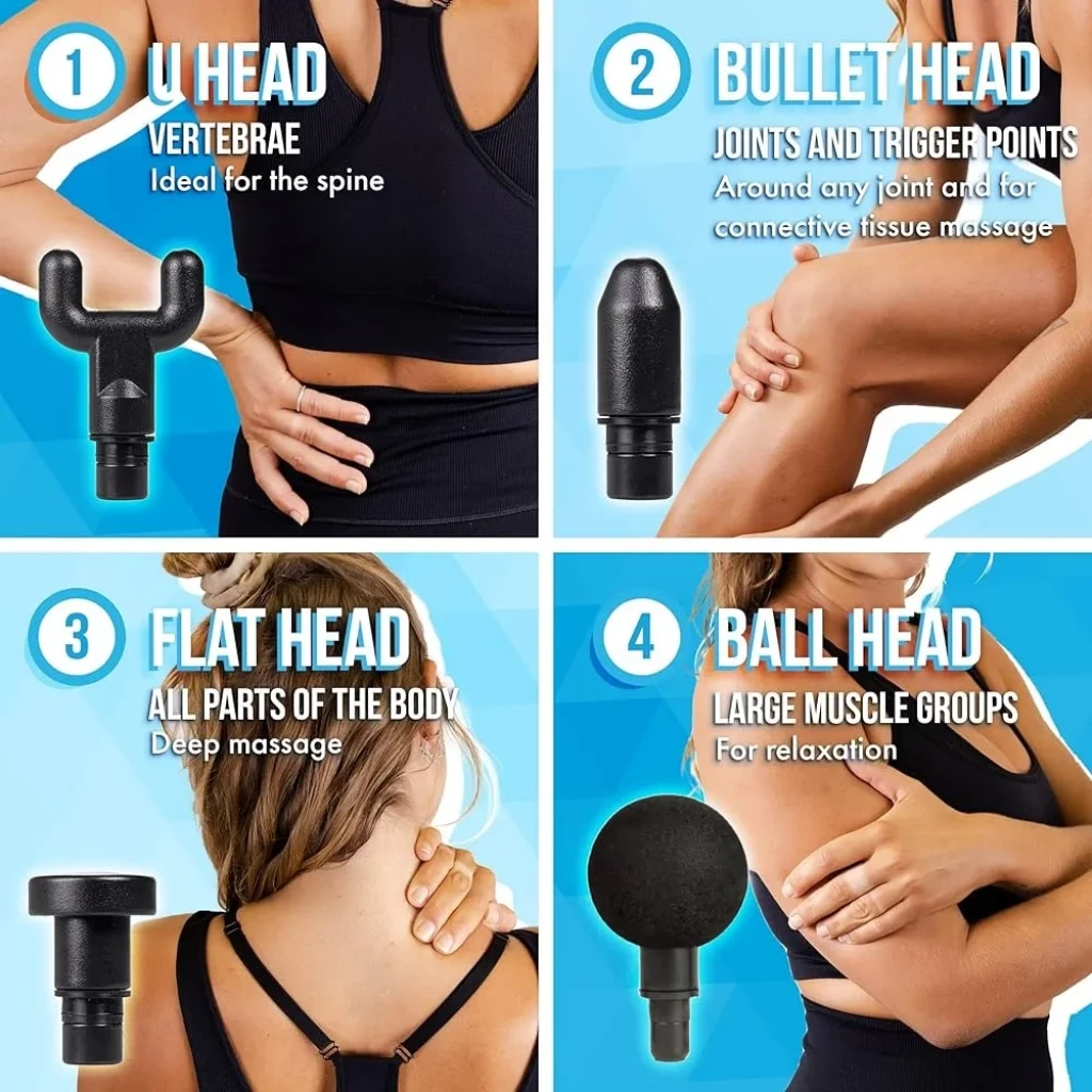 Masaj Tabancası Darbeli Titreşimli 4 Başlıklı Profesyonel Şarjlı Mini Masaj Aleti