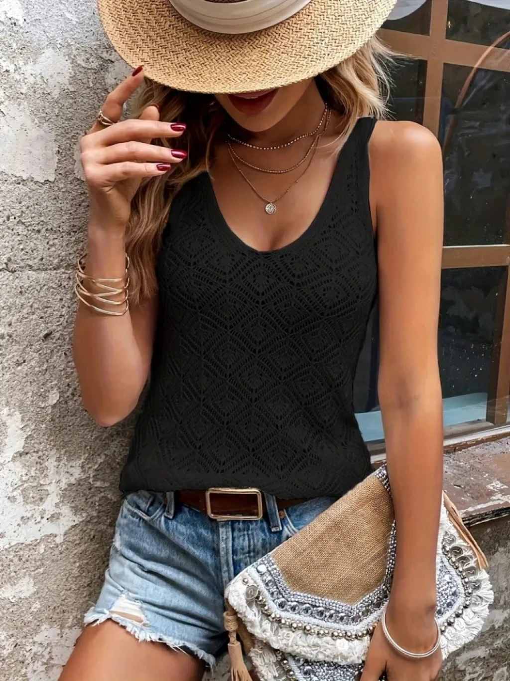 Kadın Baklava Desen Detaylı Kalın Askılı Triko Bluz