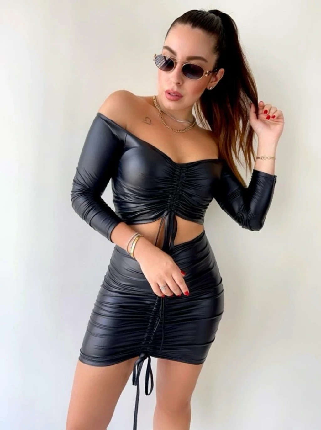 Kadın Büzgülü Deri Etek Takım Fırsat Ürün