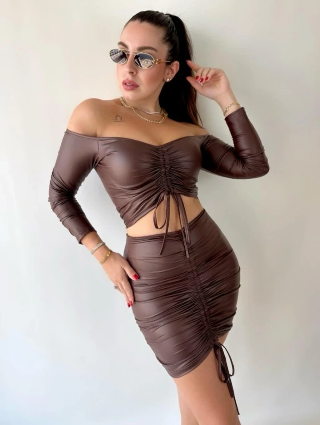 Kadın Büzgülü Deri Etek Takım Fırsat Ürün