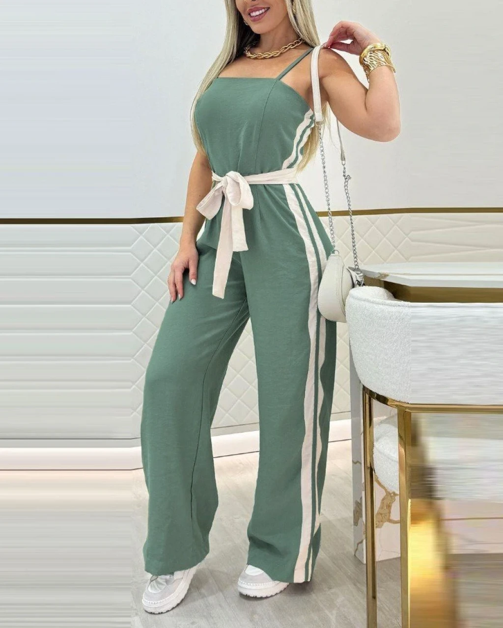 Kadın Ip Askılı Straplez Belden Kuşaklı Viskon Iki Iplik Tulum