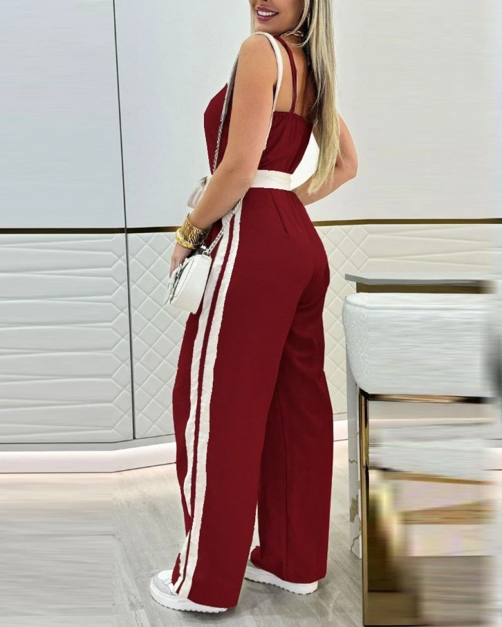 Kadın Ip Askılı Straplez Belden Kuşaklı Viskon Iki Iplik Tulum