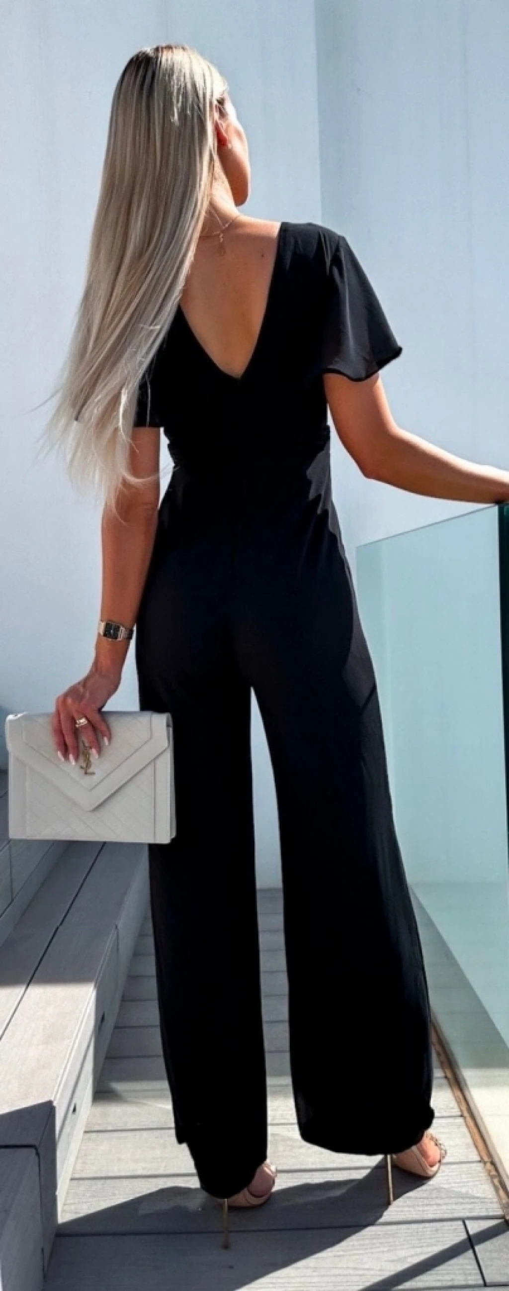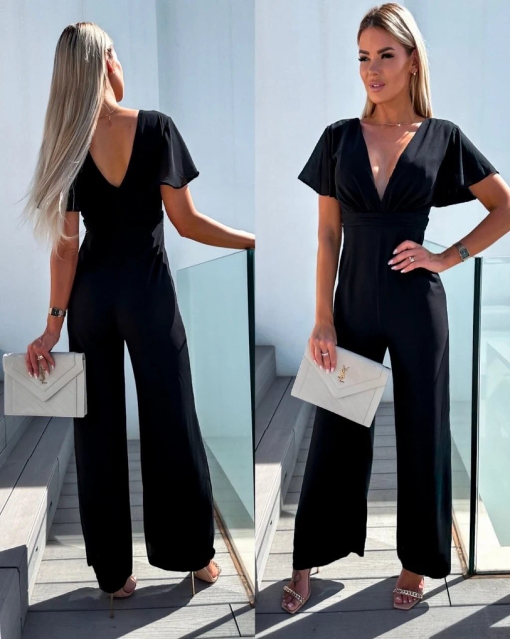 Kadın Kısa Kollu Kruvaze Yaka Sırt Dekolteli Pegasus Kumaş Tulum