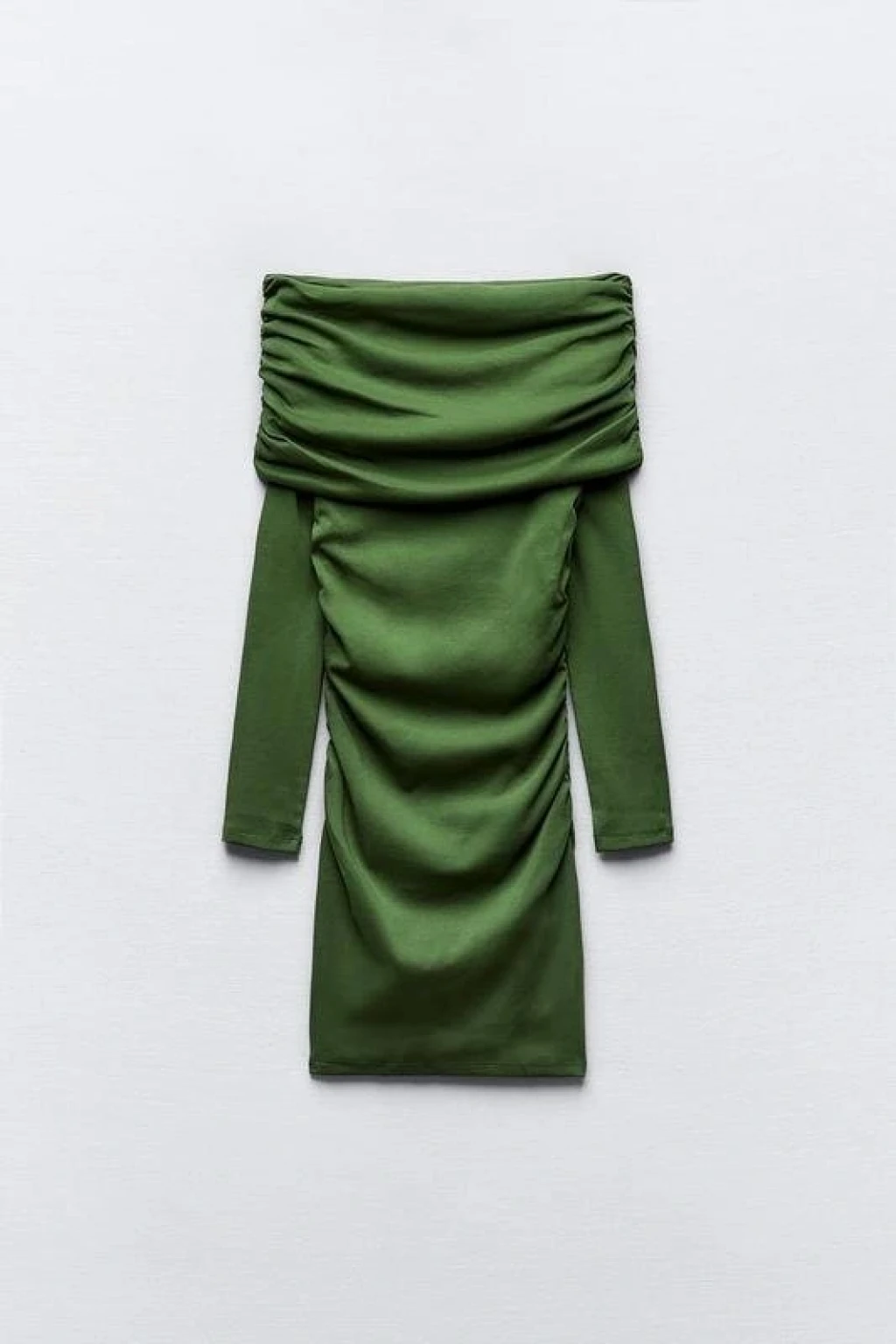 Kadın Madonna Mendil Yaka Fırsat ürün Büzgülü Mini Elbise