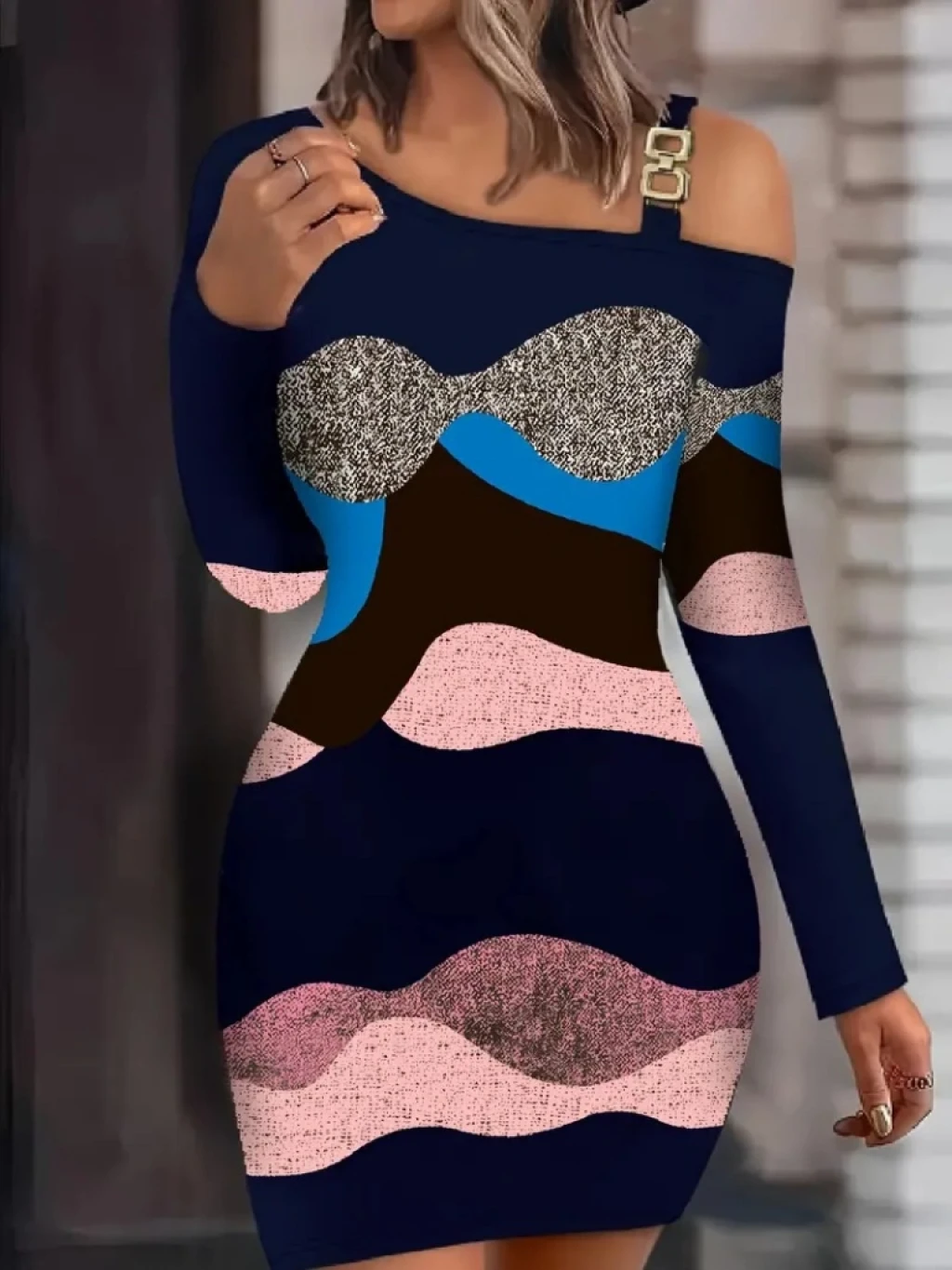 Kadın Uzun Kollu Tek Omuzu Askı Toka Detaylı Kısa Dalgıç Elbise