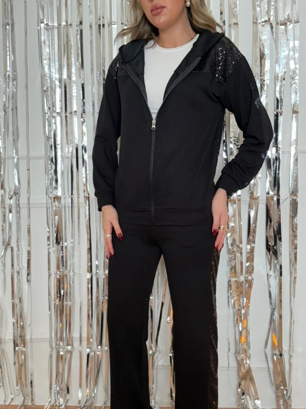 Kadın Yılbaşı özel Iki Iplik Kumaş Pul Ve Fermuar Detaylı Ikili Takım
