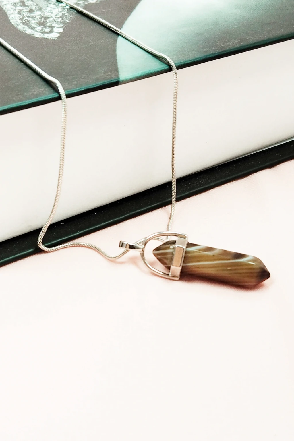 Kahverengi Akik Doğal Taşı Zincirli El Yapımı Tasarımlı Kolye Uç: 3,5 cm Zincir: 20 cm Kutulu