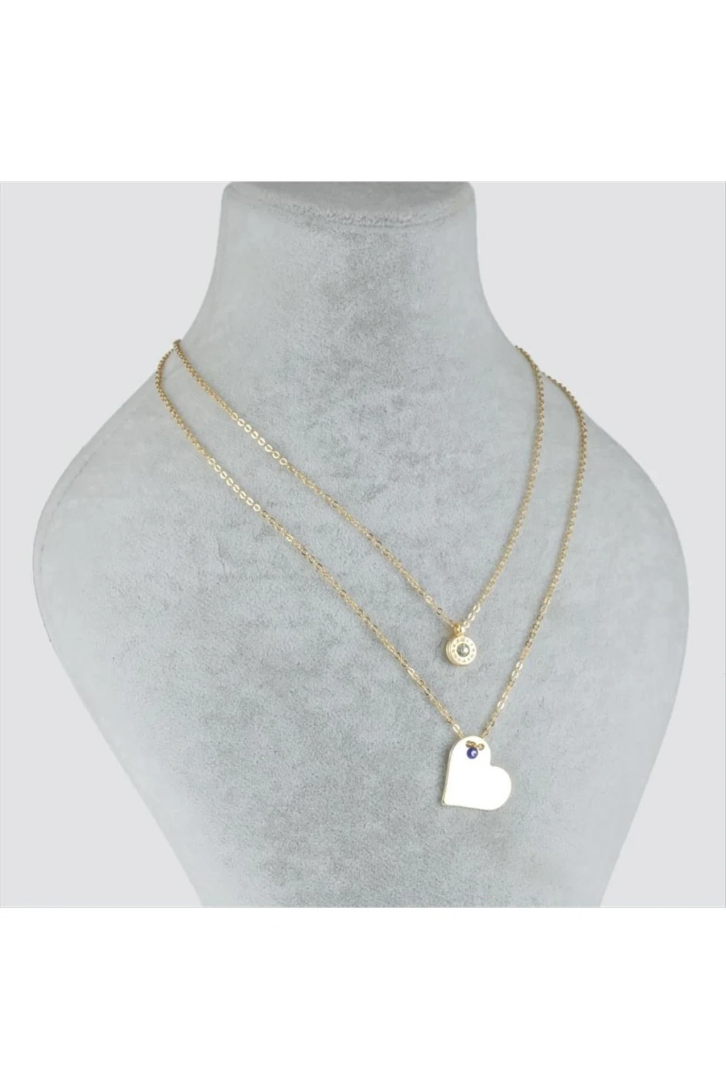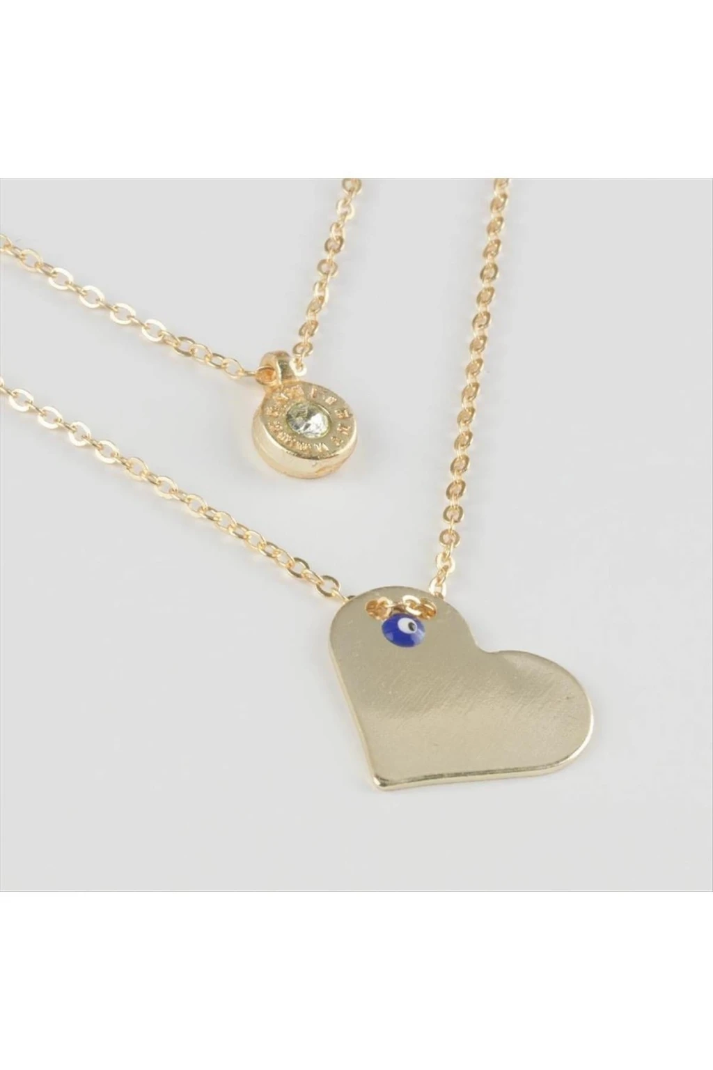 Kalp Figürlü Nazarlı Plaka İkili Kolye