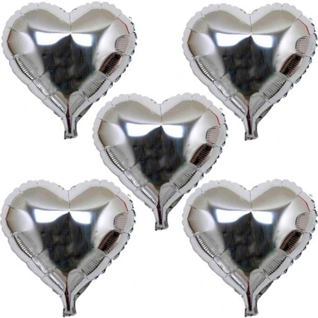 Kalp Şeklinde Folyo Balon 5 Adet 45 cm Gümüş Renk