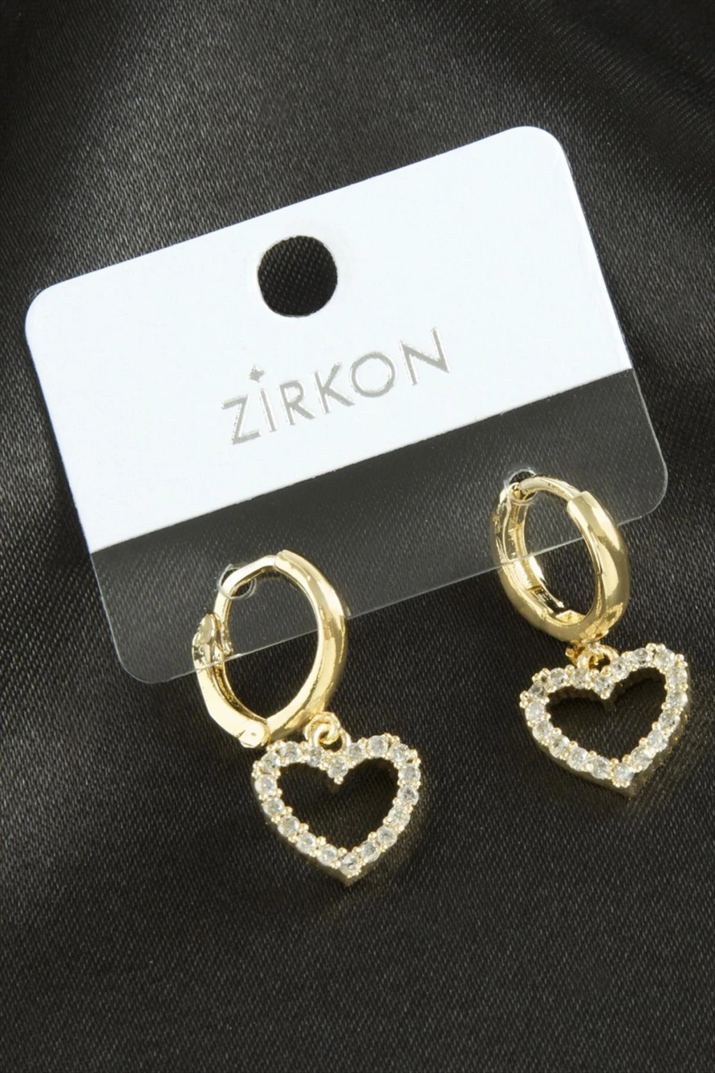 Küpe; Ürün malzemesi metal ve zirkon taşından imal edilmiştir. 1 sınıf kaliteli malzeme kullanılmıştır. Ürün boyu 2,5 cm ve kartlıdır.