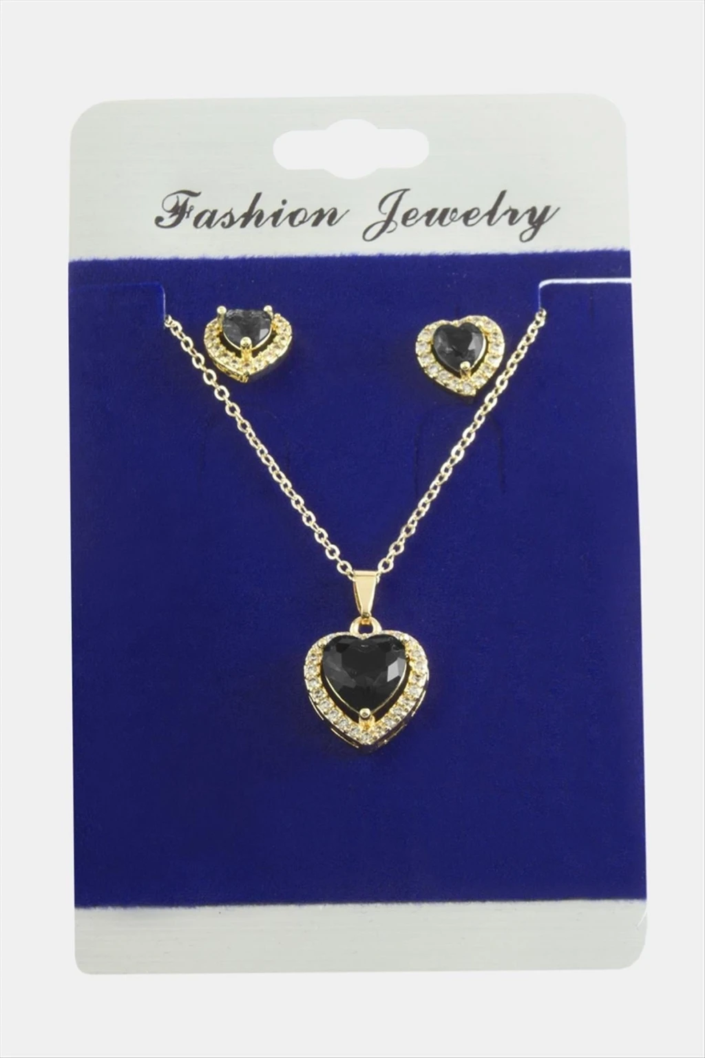Kolye; Ürün malzemesi metal ve zirkon taştan üretilmiştir. 1 sınıf kaliteli malzeme kullanılmıştır. Ürün 1 adet kolye, ve 1 adet çift küpe vardır. Ürün zincir uzunluğu 45 santimdir. Ürün ucundaki taşlı aparat boyu 1,5 cmdir.
