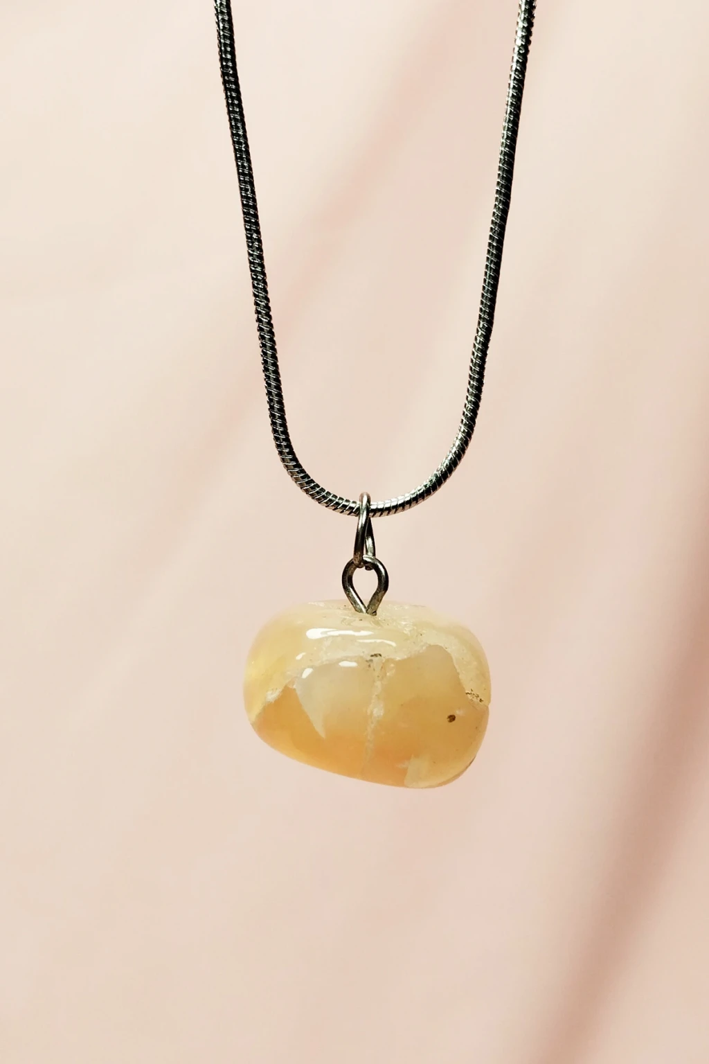 Kalsit Doğal Taşı Zincirli El Yapımı Kolye Uç: 1,5 cm Zincir: 20 cm Kutulu
