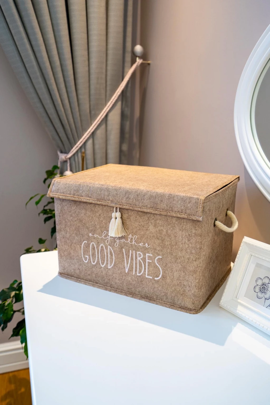 Kapaklı Püskül Detaylı Düzenleyici Çok Amaçlı Organizer Keçe Sepet (mini) - 03495
