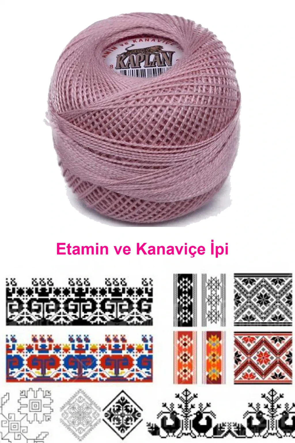 3 Adet Kaplan Etamin Ve Kanaviçe İpi 8 No Kod/Renk: 726 - PUDRA - 918 - Ryl