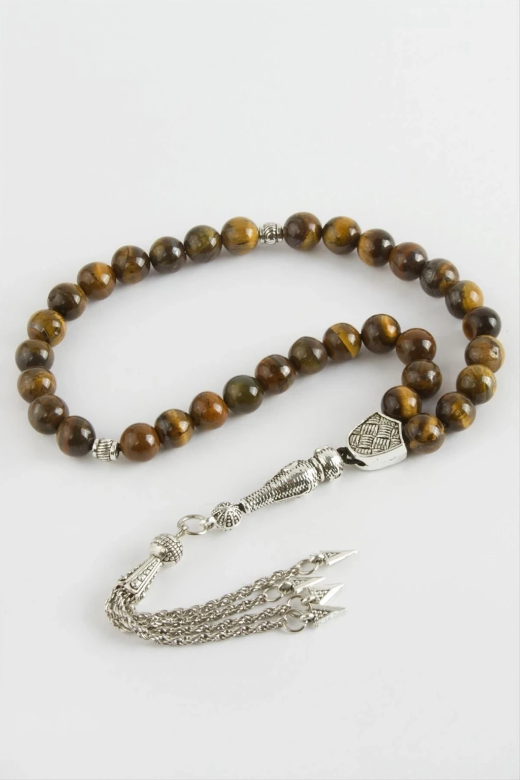 Tesbih; Gerçek Kaplangözü doğaltaş tan imal edilmiştir. Taş boyutu 8 mmdir. Ürün püskülleri asortilidir. Resimde görünen püskül farklı olarak gönderilebilir.