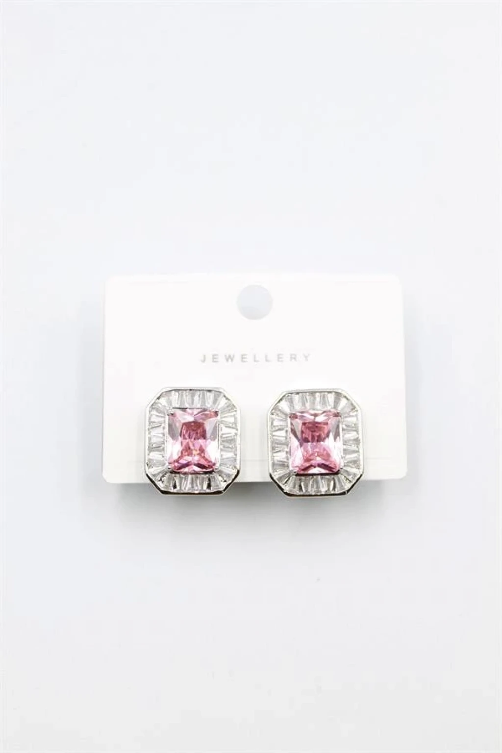 Kare Taşlı Küpe - Pembe