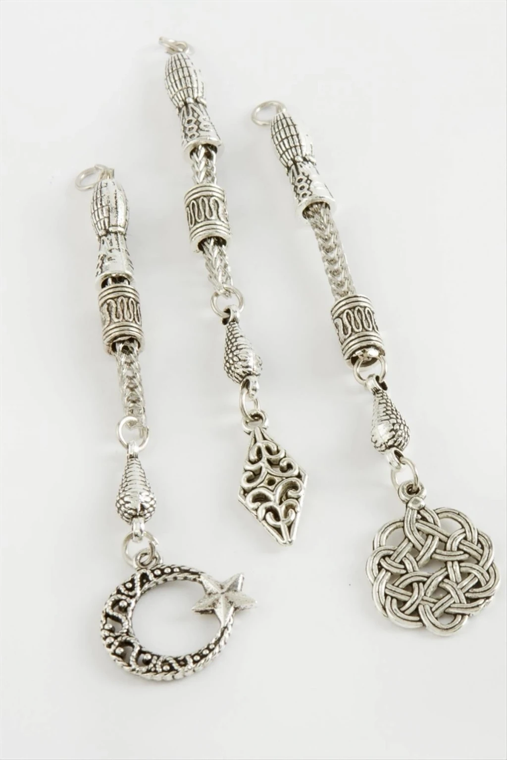 Tesbih Püskülü; Malzemesi metal ve tesbih ucuna takılmak için kullanılır. Fiyat 1 adet için geçerlidir. Ürün boyu 7 cmdir. 1 Adet zincir sallantılıdır. Ürün figürleri asortilidir. Siparişlerinizde karışık olarak gönderilecektir.