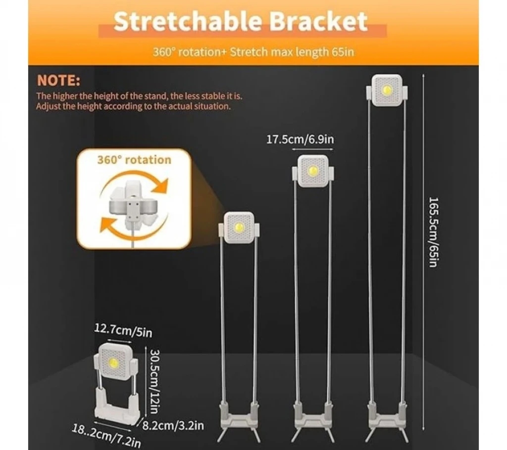 Kamp, doğa yürüyüşleri, balıkçılık, acil durumlar ve ev içi kullanım için ideal! Ultra güçlü ışık performansı ve katlanabilir tasarımıyla bu çok işlevli kamp lambası, her ortamda yanınızda!