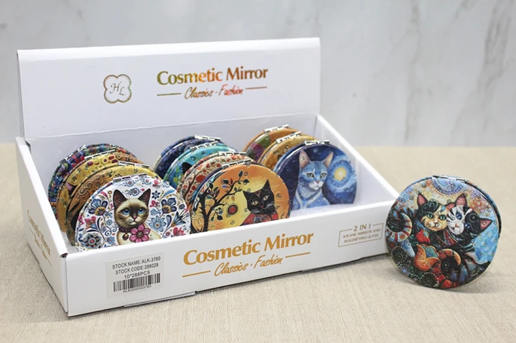 Kedi Taşlı El Aynası Yuvarlak İnce