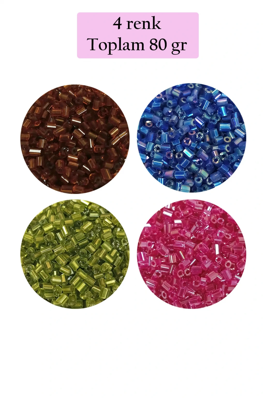 Kesme Cam Boncuk 2mm - 4 Renk - Toplam 80 Gram - BNC445