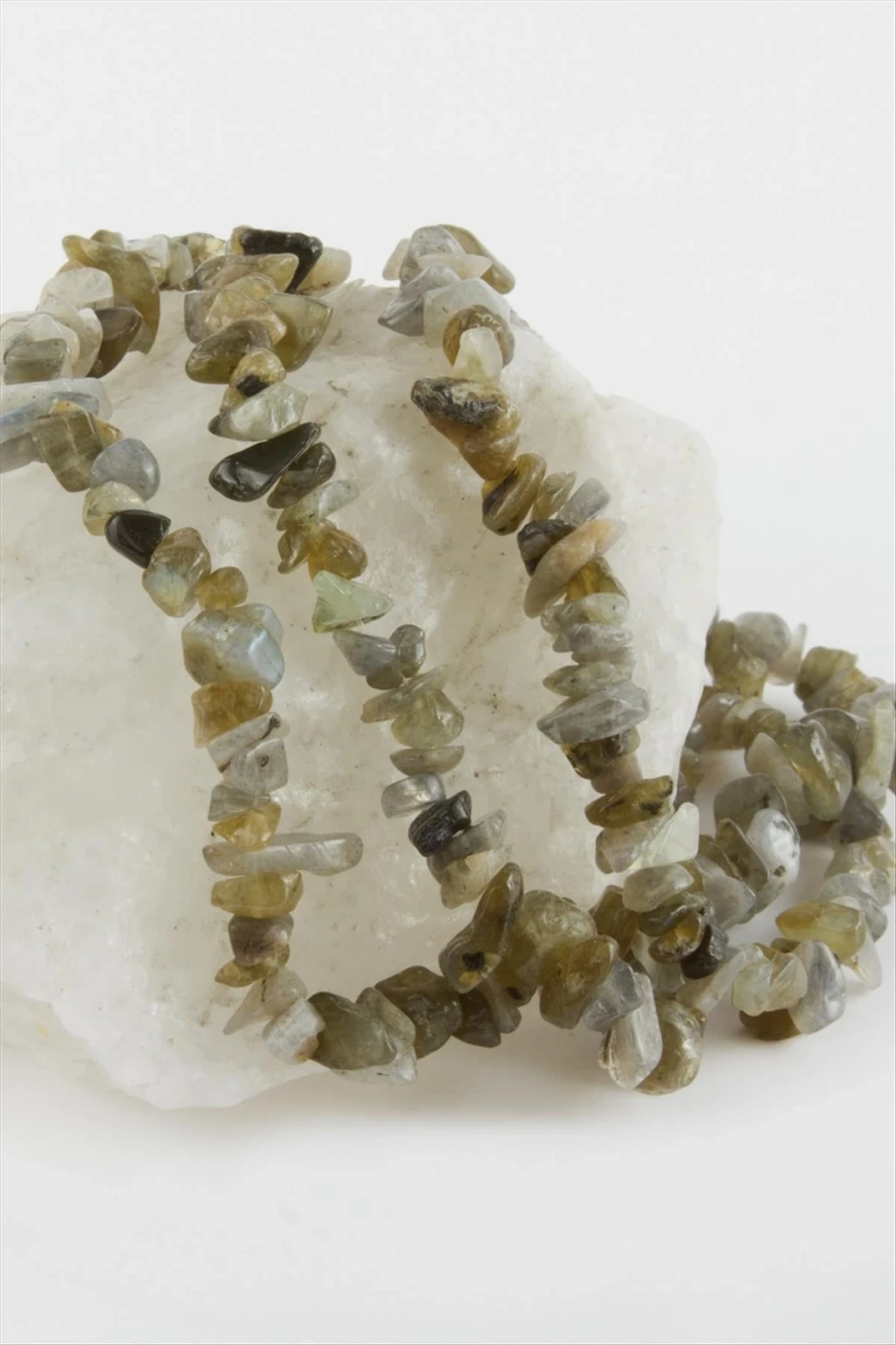 Labradorit Taş: Ürün taş boyutları karışıktır. 1 dizide yaklaşık 240 adet taş bulunmaktadır. 1 dizinin toplam yaklaşık uzunluğu 74 cmdir.
