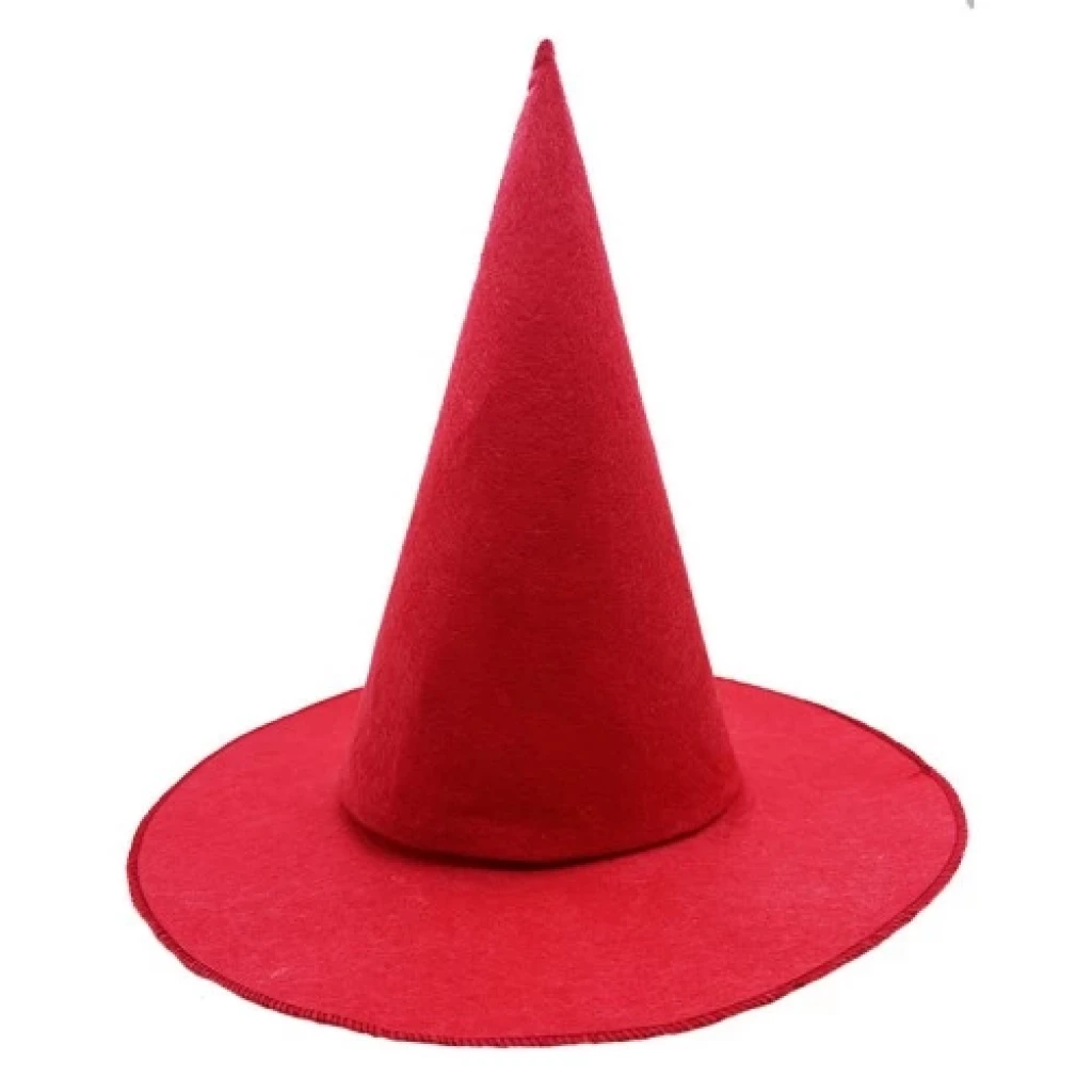 Kırmızı Renk Keçe Cadı Şapkası Yetişkin Çocuk Uyumlu 35x38 Cm