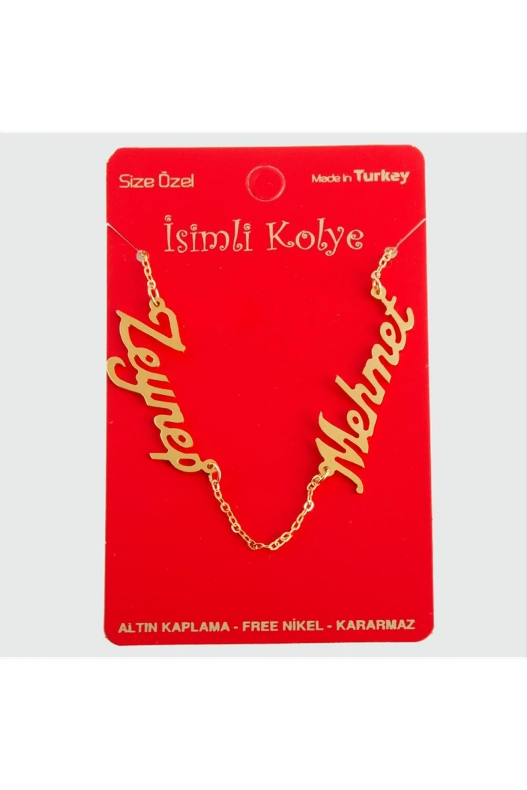 Kolye; Ürün pirinç ve altın kaplamalıdır. Kullanıma bağlı olarak uzun süre kullanıma uygundur. Ürün malzemesi 1 sınıf kalitededir. Ürün iadesi yoktur. Kişiye özel üretilmektedir. Kapıda ödeme yoktur. Ürün 7 iş günü içersin de kargoya verilir. İsimler çift olarak yazılmaktadır. İsimler için müşteri temsilcimiz sizinle iletişime geçecektir. Ürün zincir boyu 45 cm ve ürün üzerindeki isimler yaklaşık 3 cmdir. İsim boyları ürün ismine göre degişiklik göstermektedir. Ürün zincir boyu 45 cm ve ürün üzerindeki isimler yaklaşık 3 cmdir. İsim boyları ürün ismine göre degişiklik göstermektedir.