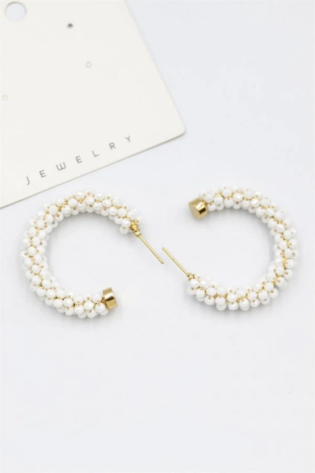 Kristal Boncuk Halka Küpe - Beyaz
