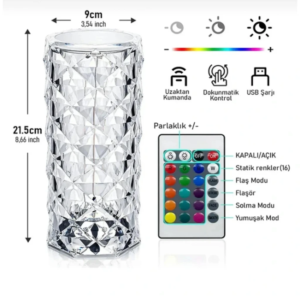 Kristal LED Kumandalı Ve Dokunmatik Masa Lambası