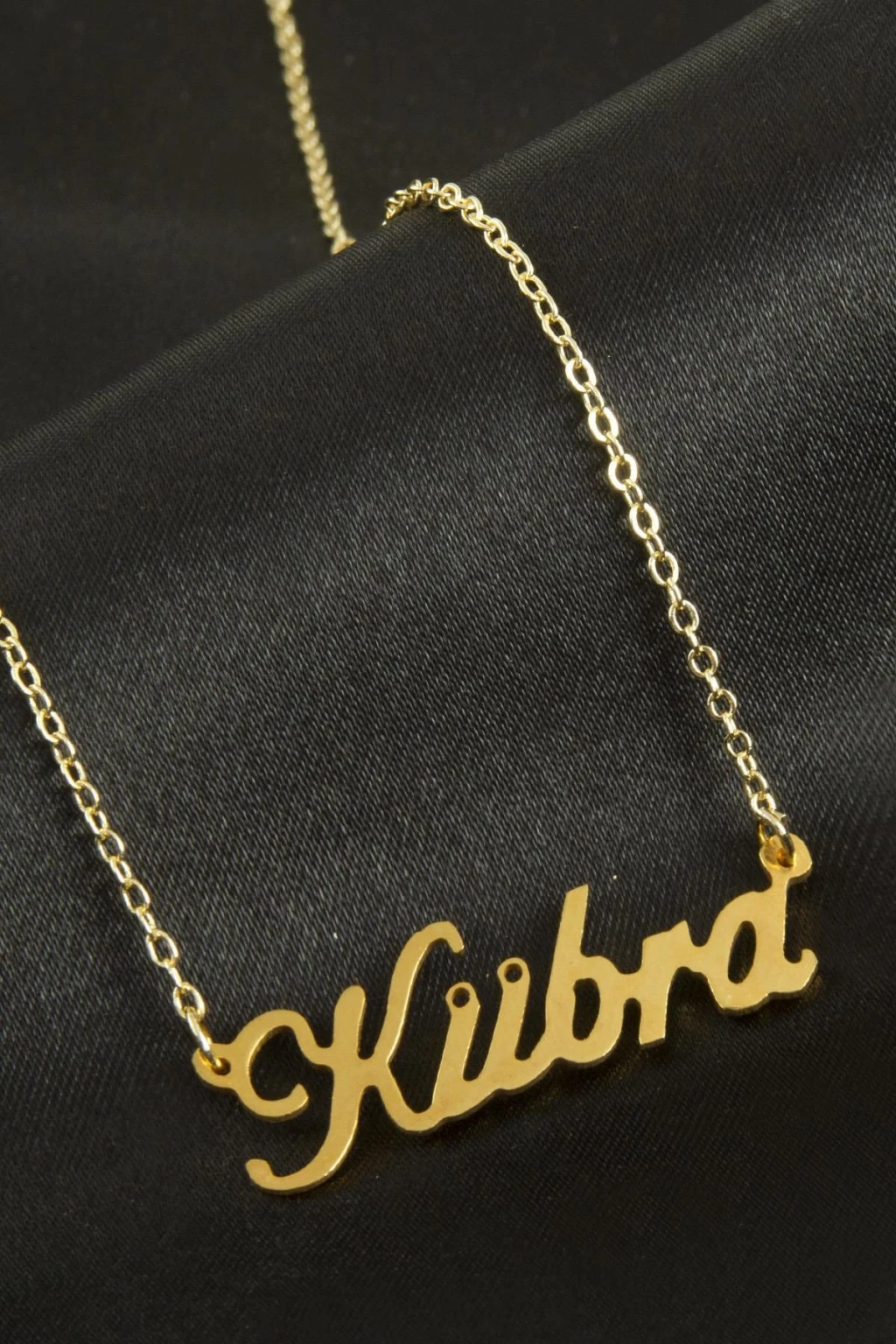 Kübra isimli kolye. İsimli kolye pirinç madeninden ve altın kaplamalıdır. Kişiye özel üretilmektedir.Yazdırmak istediğiniz ismi bize mesaj olarak iletmeniz gerekmektedir. Kullanıma bağlı olarak uzun süre kullanıma uygundur. Ürün malzemesi 1.sınıf kalitededir. Ürün ve zinciri sarı renktedir. Ürün zincir boyu 45 cm ve ürün üzerindeki isimler yaklaşık 3 cmdir. İsim boyları ürün ismine göre degişiklik göstermektedir.