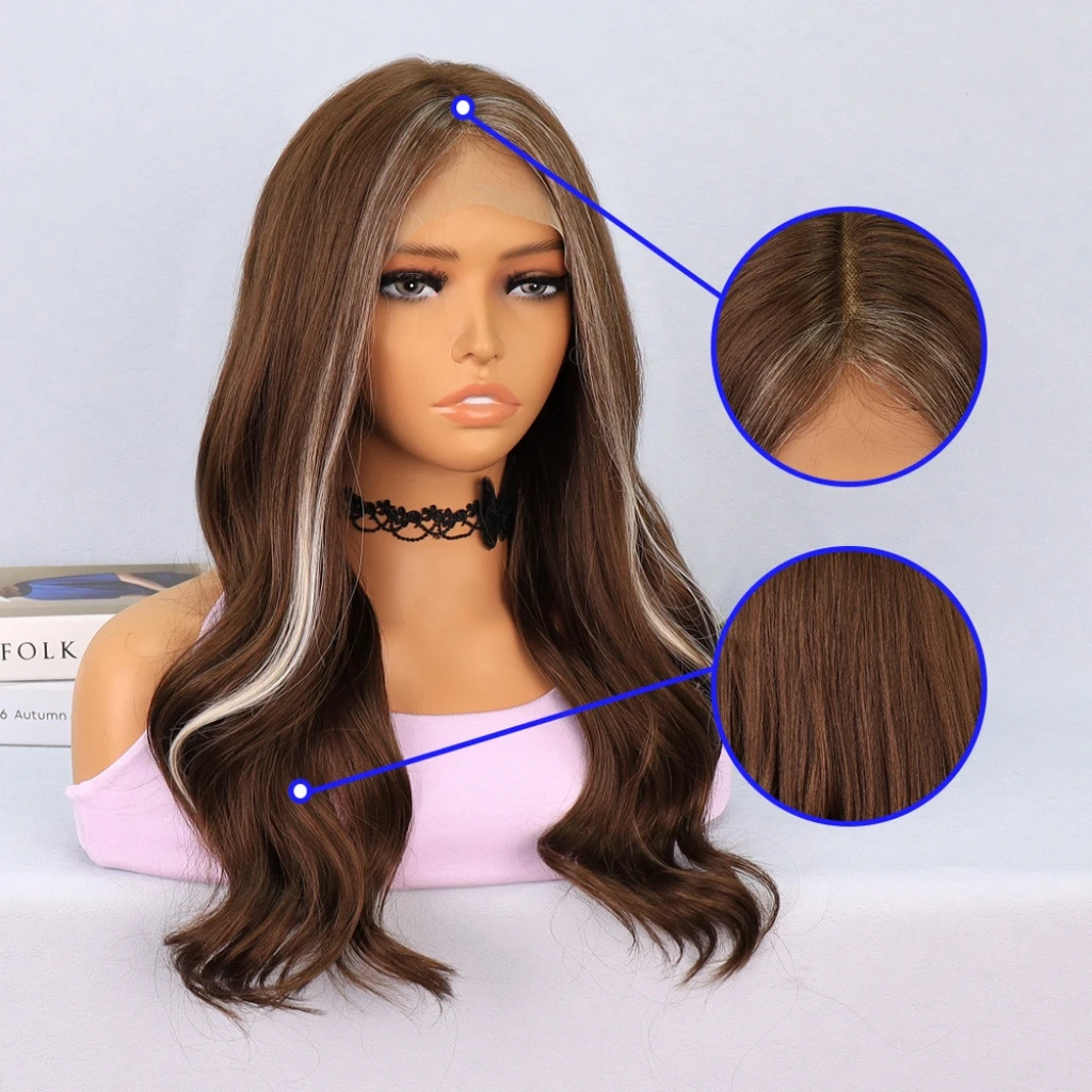 Kumral Önlerde Platin Işıltılı Dalgalı Tül Peruk
