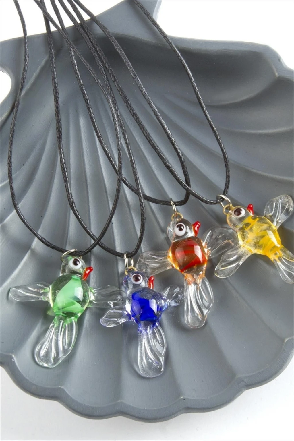 Cam Kolye; Kordonu vinlex deridir. Ürün ustalarımız tarafından atölyemizde tek tek el işçiliği ile üretilmektedir. İmalatımız da yerli cam ve orijinal italyan cam kullanılmaktadır. Cam ürünlerinde sanatsal bir işçilikle çalışılmaktadır. Ürün asortilidir. Siparişleriniz de karışık olarak gönderilecektir. Ürün cam boyu 2,5  cm ve ip boyu 45 cmdir.