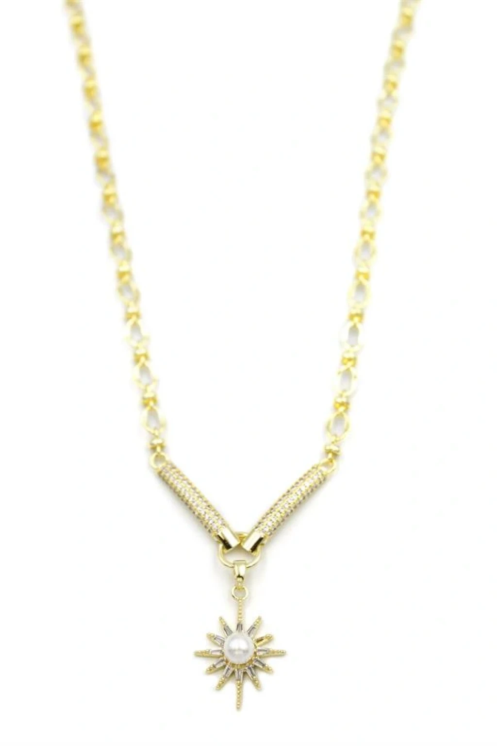Yıldız Ezme Zincir Kolye - 45cm - Gümüş
