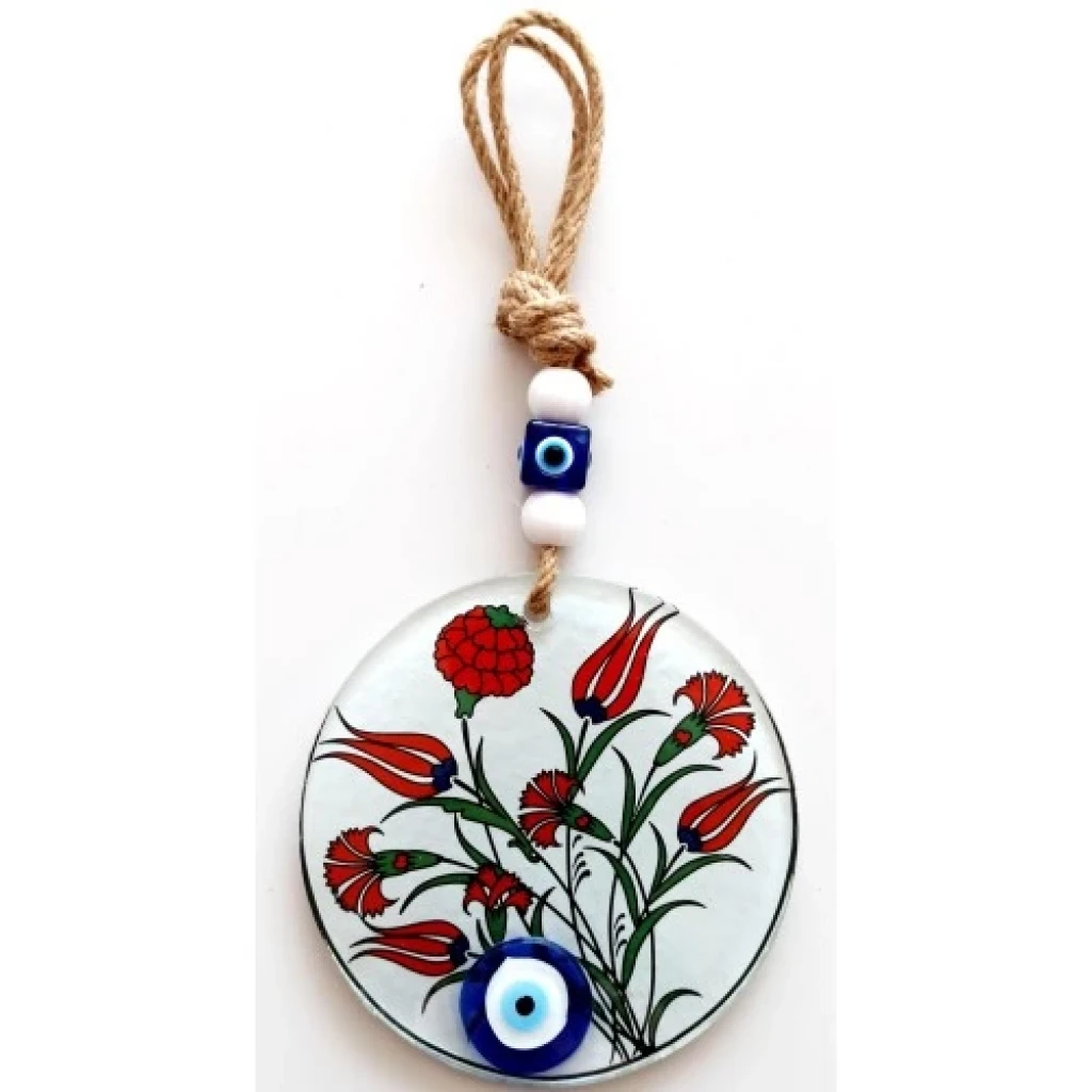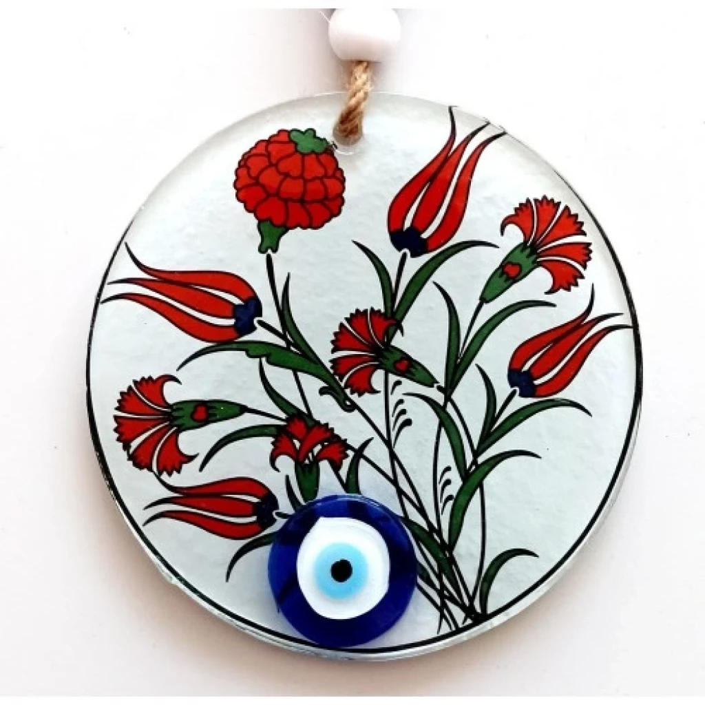 Nazar Boncuklu Lale Desenli Füzyon Cam Duvar Süsü