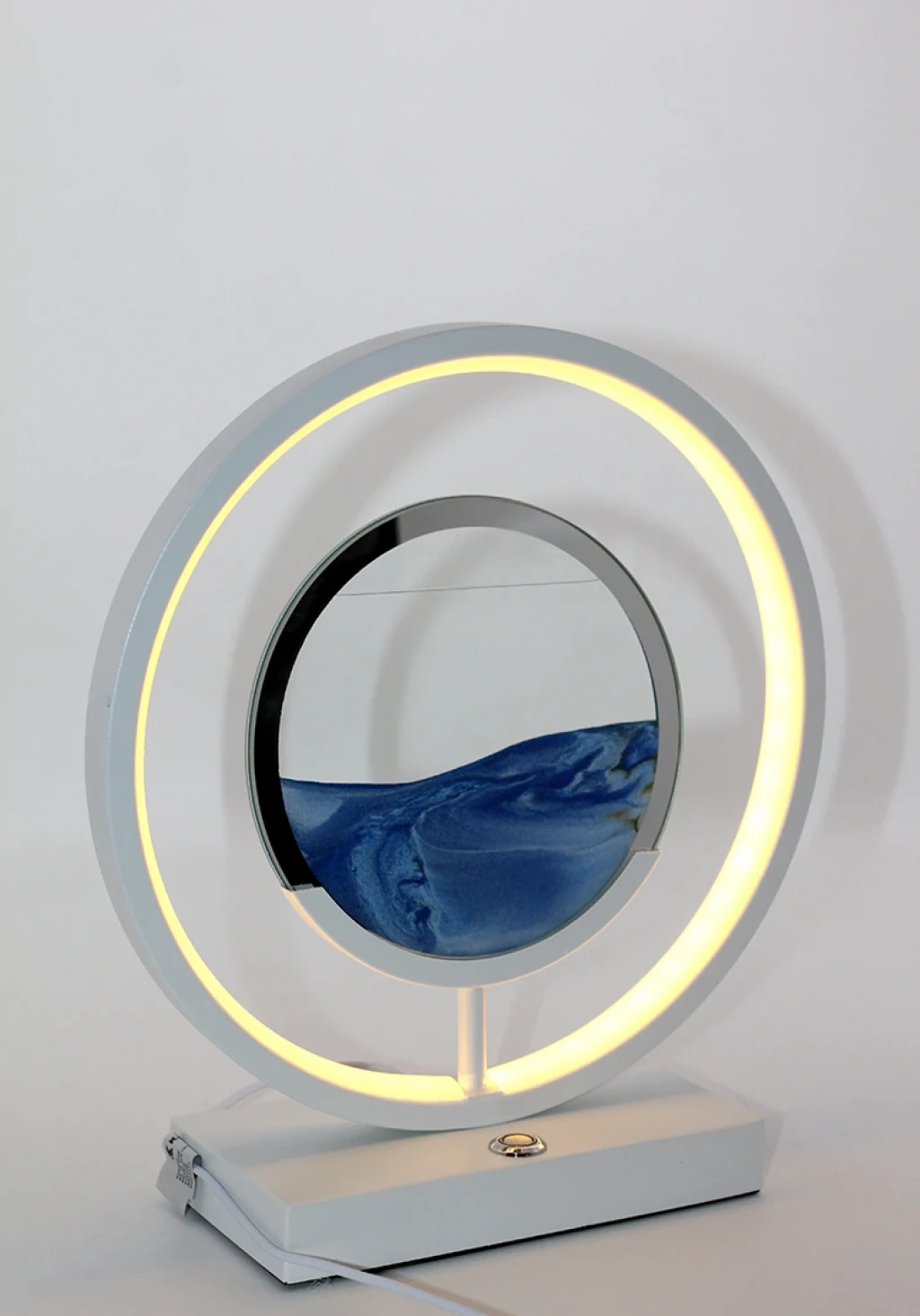 LEDLİ SULU KUM SAATİ MODEL 2Ürün ÖzellikleriLedli Sulu Kum Saati Model 2, yuvarlak tasarımı ve etrafını saran LED ışıkla şık ve modern bir görünüm sunan dekoratif bir zaman ölçerdir. Sıvı içinde hareket eden renkli kum tanecikleri, dinlendirici ve estetik bir görsel deneyim sağlarken, daire şeklindeki LED ışıklandırması loş ortamlarda etkileyici bir atmosfer oluşturur. Ev, ofis, çalışma masası veya terapi ortamları için mükemmel bir dekoratif aksesuar olup, modern iç mekan tasarımlarına zarif bir dokunuş katar.Paket İçeriği1 adet Ledli Sulu Kum Saati Model 2