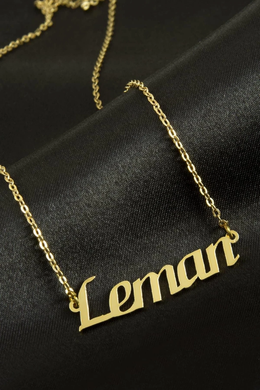 Leman isimli kolye. İsimli kolye pirinç madeninden ve altın kaplamalıdır. Kişiye özel üretilmektedir.Yazdırmak istediğiniz ismi bize mesaj olarak iletmeniz gerekmektedir. Kullanıma bağlı olarak uzun süre kullanıma uygundur. Ürün malzemesi 1.sınıf kalitededir. Ürün ve zinciri sarı renktedir. Ürün zincir boyu 45 cm ve ürün üzerindeki isimler yaklaşık 3 cmdir. İsim boyları ürün ismine göre degişiklik göstermektedir.