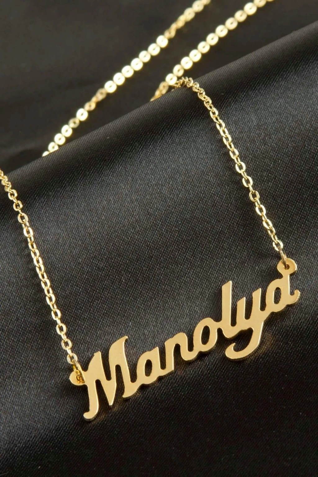 Manolya isimli kolye. İsimli kolye pirinç madeninden ve altın kaplamalıdır. Kişiye özel üretilmektedir.Yazdırmak istediğiniz ismi bize mesaj olarak iletmeniz gerekmektedir. Kullanıma bağlı olarak uzun süre kullanıma uygundur. Ürün malzemesi 1.sınıf kalitededir. Ürün ve zinciri sarı renktedir. Ürün zincir boyu 45 cm ve ürün üzerindeki isimler yaklaşık 3 cmdir. İsim boyları ürün ismine göre degişiklik göstermektedir.