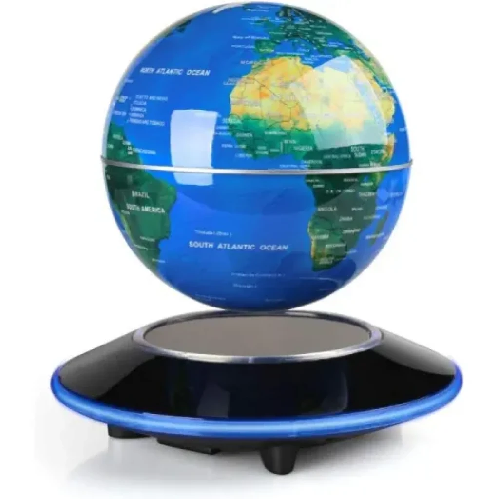 Manyetik dünya küre ışıklı model, modern tasarımı ile dikkat çeken dekoratif bir üründür. 6 inç boyutundaki küre, manyetik mekanizma sayesinde havada asılı durarak kendi etrafında döner. Alt kısmındaki LED ışıklar, loş ortamlarda estetik bir görünüm sunar. Fiş ile çalışarak sürekli kullanım imkânı sağlar. Görseldeki renklerden karışık olarak gönderilmektedir. Hem şık bir dekor hem de etkileyici bir hediye alternatifi olarak tercih edilebilir.