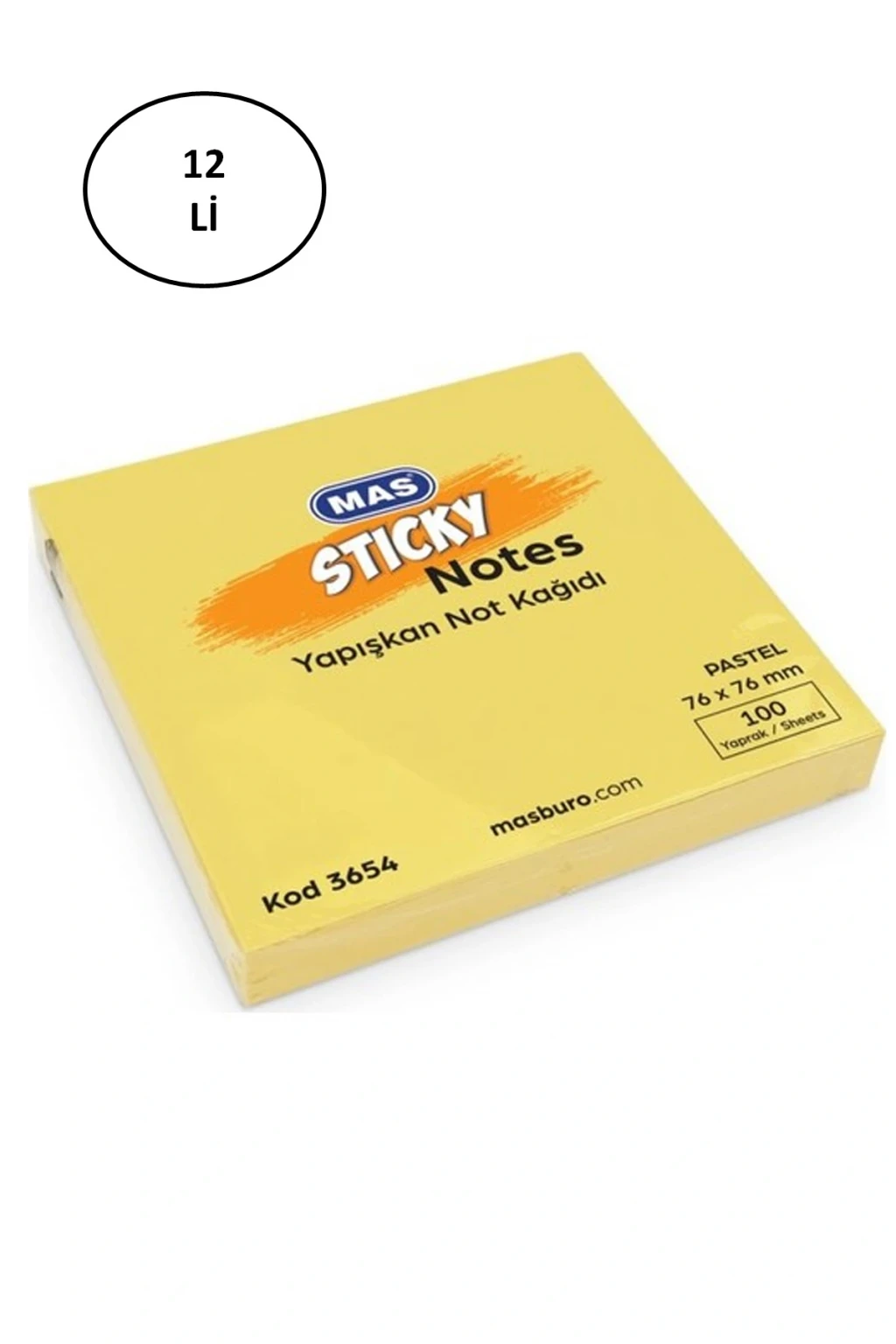 Mas 3654 Pastel Sarı 100 Yaprak Yapışkanlı Not Kağıdı