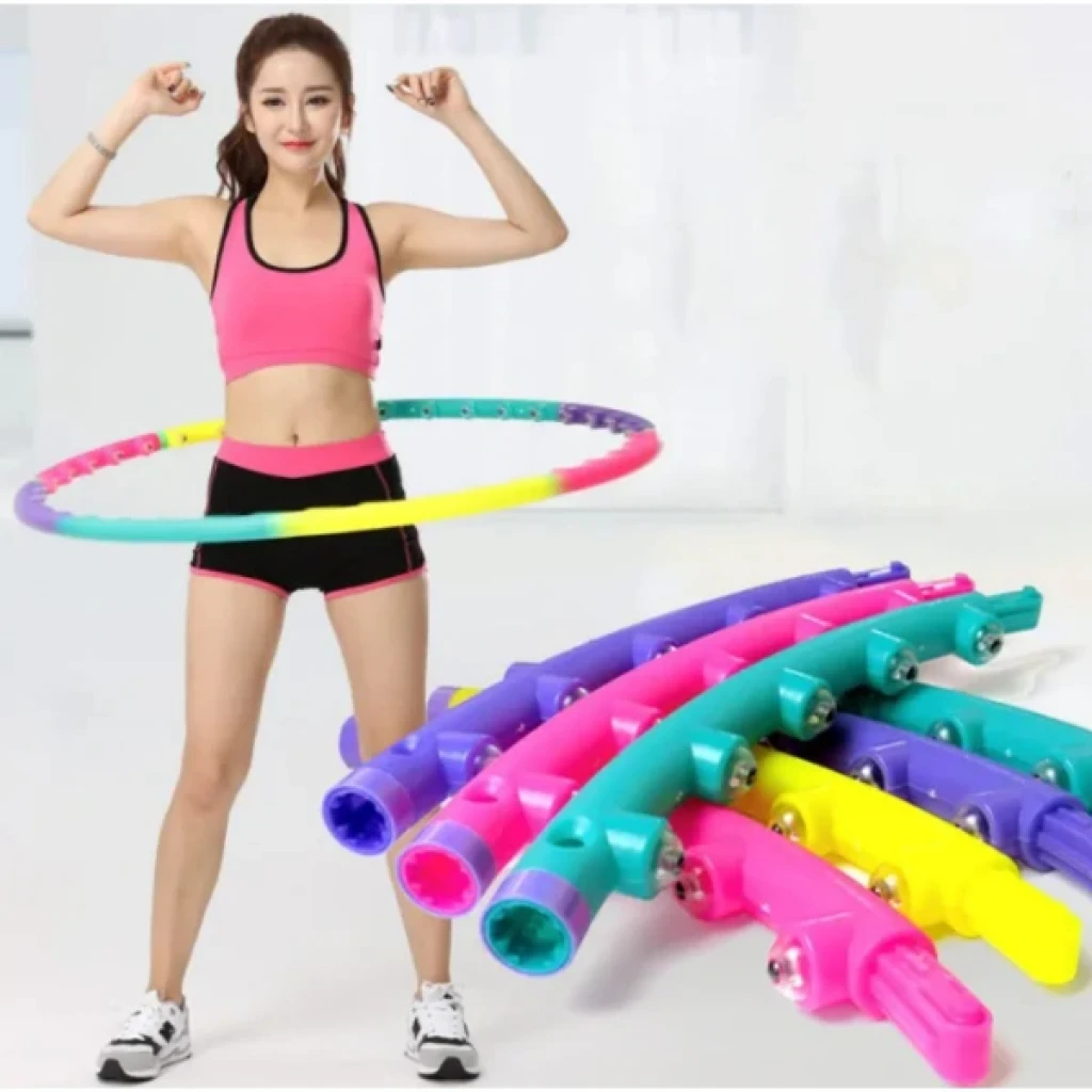 MASAJ BİLYELİ HULAHOPÜrün ÖzellikleriMasaj bilyeli hulahop, formda kalmak ve vücut şekillendirmek isteyenler için mükemmel bir egzersiz aracıdır. Düzenli kullanımda bel ve karın bölgesindeki yağların yakılmasına yardımcı olur, kasları sıkılaştırarak fit bir görünüm kazandırır. İç kısmında yer alan masaj bilyeleri, egzersiz sırasında kan dolaşımını hızlandırır ve vücuda masaj etkisi yaparak rahatlama sağlar. Renkli ve modüler tasarımı sayesinde kolayca takılıp sökülebilir, taşıması ve saklaması pratiktir. Dansla birleştirilen hulahop egzersizleri hem eğlenceli hem de yüksek kalori yakımı sağlar. Saatte 700 kaloriye kadar enerji harcatabilir. Günde 1-2 kez, 20 dakikayı geçmeyecek şekilde düzenli kullanım önerilir. Sağlam plastik yapısı uzun ömürlü kullanım sunarken 98 cm çapıyla hem başlangıç hem ileri seviye kullanıcılar için uygundur.Paket İçeriği1 adet Masaj Bilyeli Hulahop