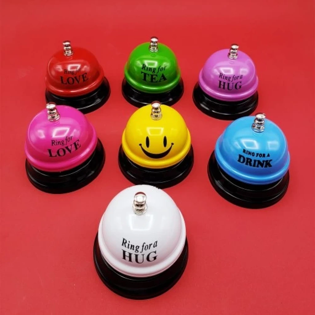 TOPTAN RENKLİ RESEPSİYON ZİLresepsiyon zili Ürün tamamen metal malzemeden üretilmiştirÜrünün 7 adet renkleri bulunmaktadırÜrün karışık renk ve görsellerde gönderilecektir Ürün Ölçüsü : 6.5 cm