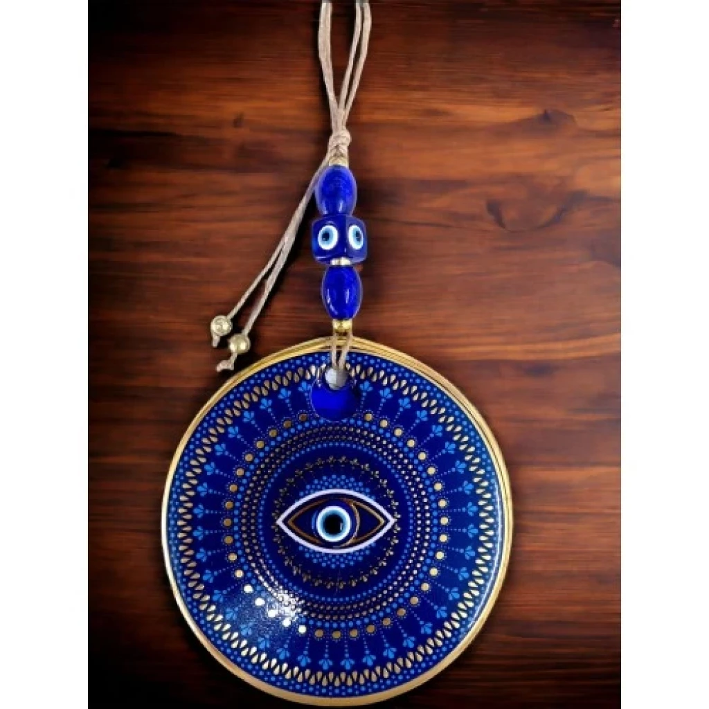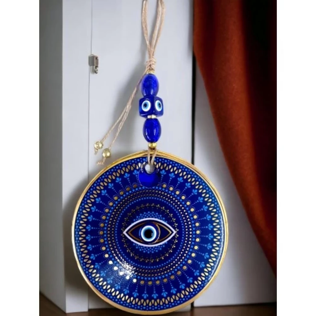 Mavi Camlı Nazar Boncuklu Göz Motifli Duvar Süsü Mavili Sarılı Duvar Dekoru