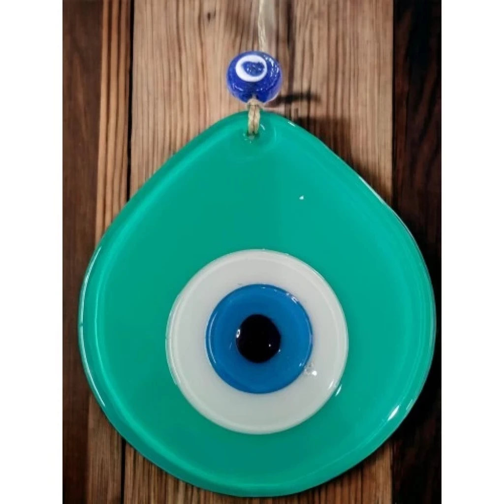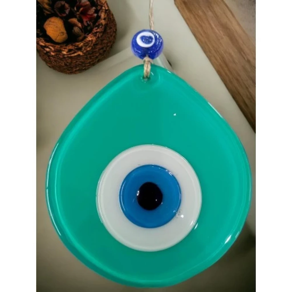 Açık Yeşil renk nazar boncuklu duvar süsümüz tamamen el işçiliği ile üretilmiştir. Tasarım harikası el yapımı nazar boncuklu duvar süsümüz 13 x 12 santimetre ölçülerindedir. Ürünümüz ip dahil 21 santimetre boyundadır.