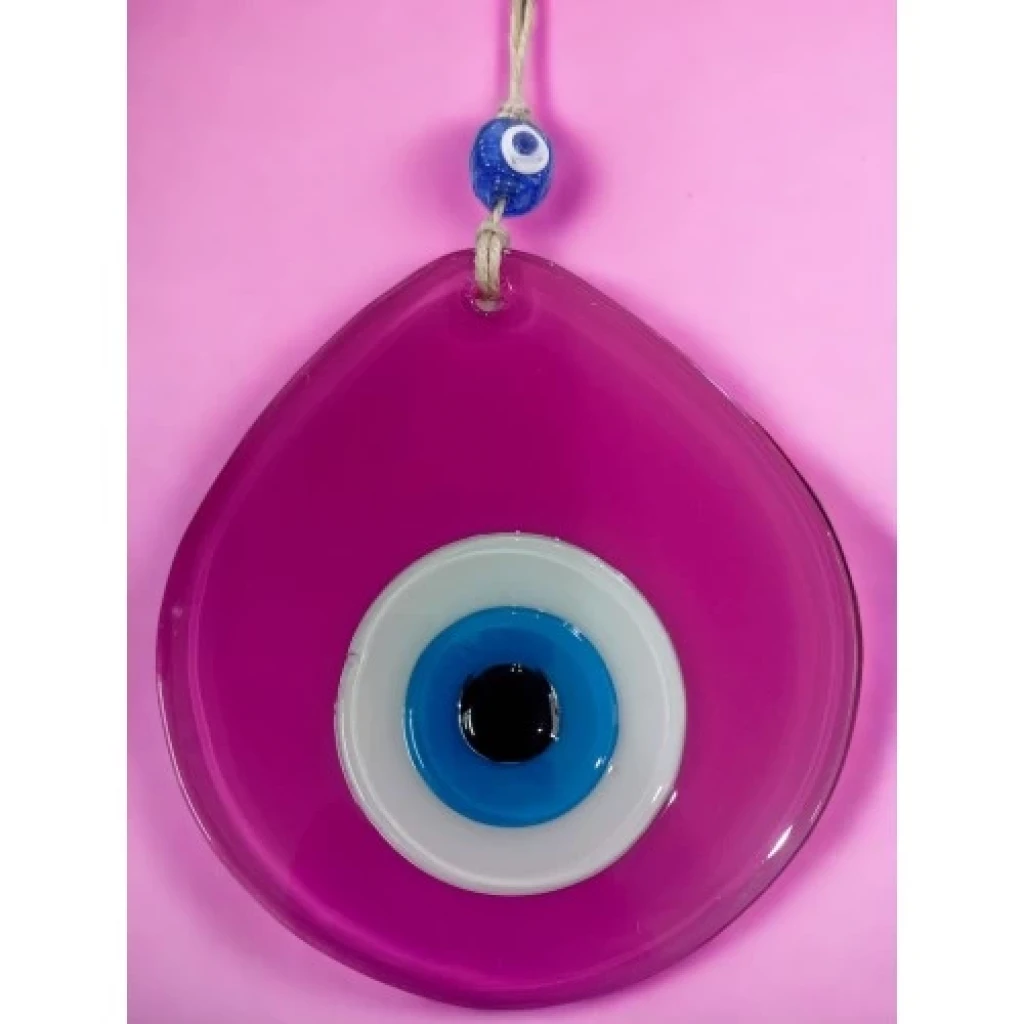 Pembe renk nazar boncuklu duvar süsümüz tamamen el işçiliği ile üretilmiştir. Tasarım harikası el yapımı nazar boncuklu duvar süsümüz 13 x 12 santimetre ölçülerindedir. Ürünümüz ip dahil 21 santimetre boyundadır.