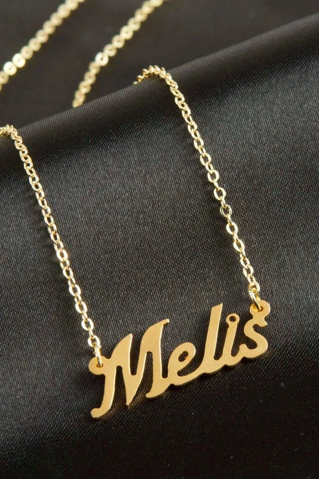 Melis isimli kolye. İsimli kolye pirinç madeninden ve altın kaplamalıdır. Kişiye özel üretilmektedir.Yazdırmak istediğiniz ismi bize mesaj olarak iletmeniz gerekmektedir. Kullanıma bağlı olarak uzun süre kullanıma uygundur. Ürün malzemesi 1.sınıf kalitededir. Ürün ve zinciri sarı renktedir. Ürün zincir boyu 45 cm ve ürün üzerindeki isimler yaklaşık 3 cmdir. İsim boyları ürün ismine göre degişiklik göstermektedir.