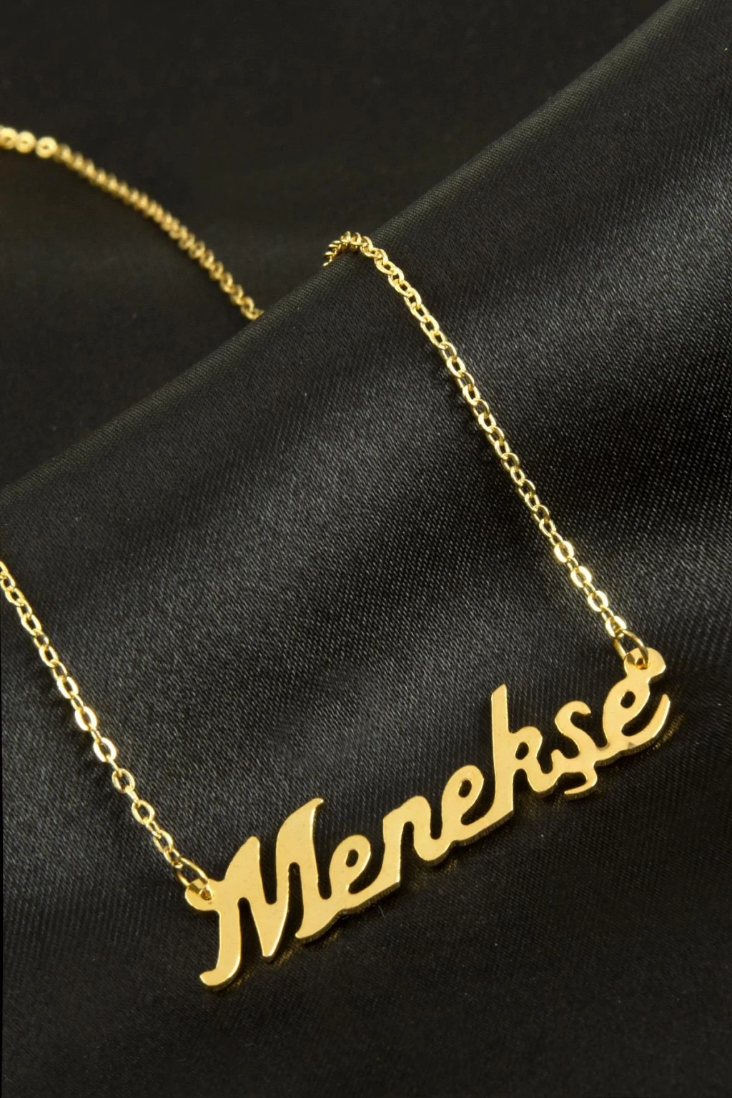 Menekşe İsimli Kolye. İsimli kolye pirinç madeninden ve altın kaplamalıdır. Kişiye özel üretilmektedir.Yazdırmak istediğiniz ismi bize mesaj olarak iletmeniz gerekmektedir. Kullanıma bağlı olarak uzun süre kullanıma uygundur. Ürün malzemesi 1.sınıf kalitededir. Ürün ve zinciri sarı renktedir. Ürün zincir boyu 45 cm ve ürün üzerindeki isimler yaklaşık 3 cmdir. İsim boyları ürün ismine göre degişiklik göstermektedir.